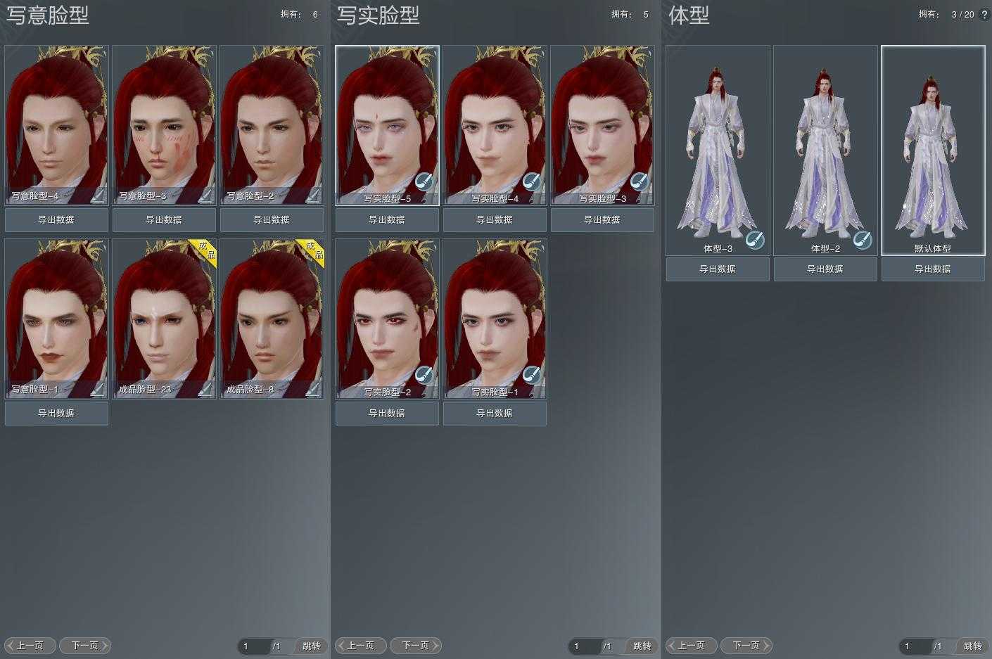 【捏脸】写意脸型6个,写实脸型5个,体型3个