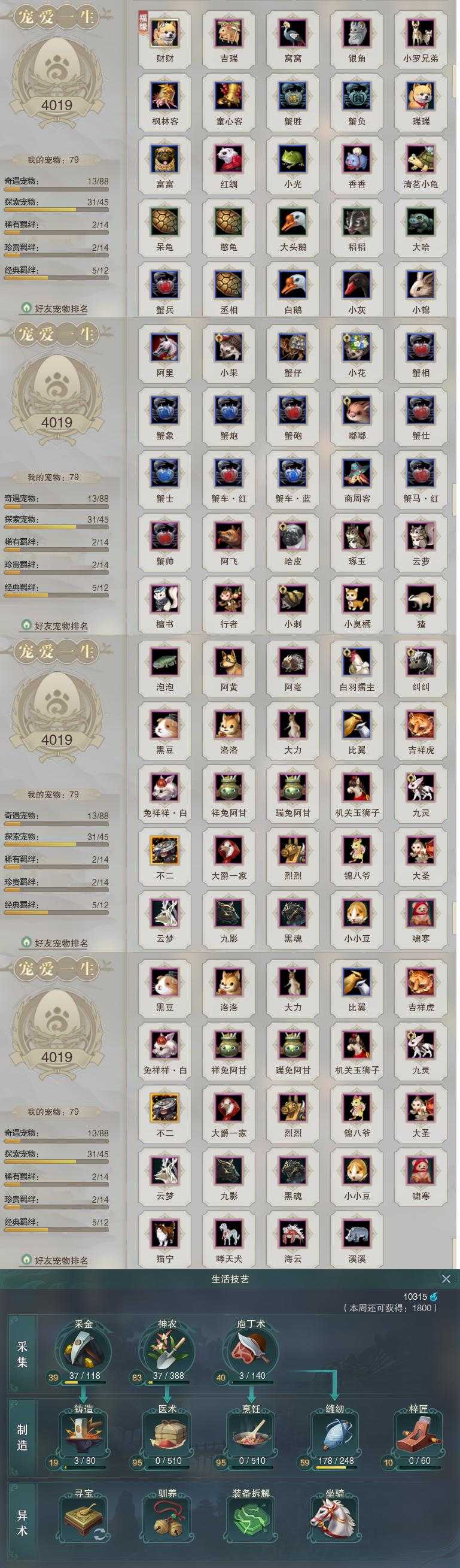 【同伴】沈剑心80级境界壹,李星云72级境界壹,卫庄志72级境界壹,赵灵儿72级境界壹,温折枝69级境界壹,茸茸志69级境界壹,康宴别63级境界壹,唐小珂63级境界壹,月嘉禾63级境界壹,贺闲志63级境界壹,盖聂志63级境界壹,李逍遥63级境界壹,年小熊46级境界壹,年小鹿1级境界壹,阮归云1级境界壹,温辞秋1级境界壹,阮闲舟1级境界壹,李萼志1级境界壹