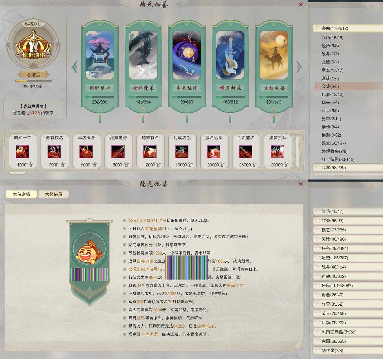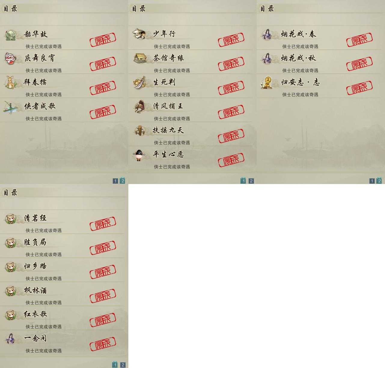 【奇遇】10个[平生心愿, 韶华故, 少年行, 扶摇九天, 清风捕王, 茶馆奇缘, 庆舞良宵, 生死判, 侠者成歌, 拜春擂]