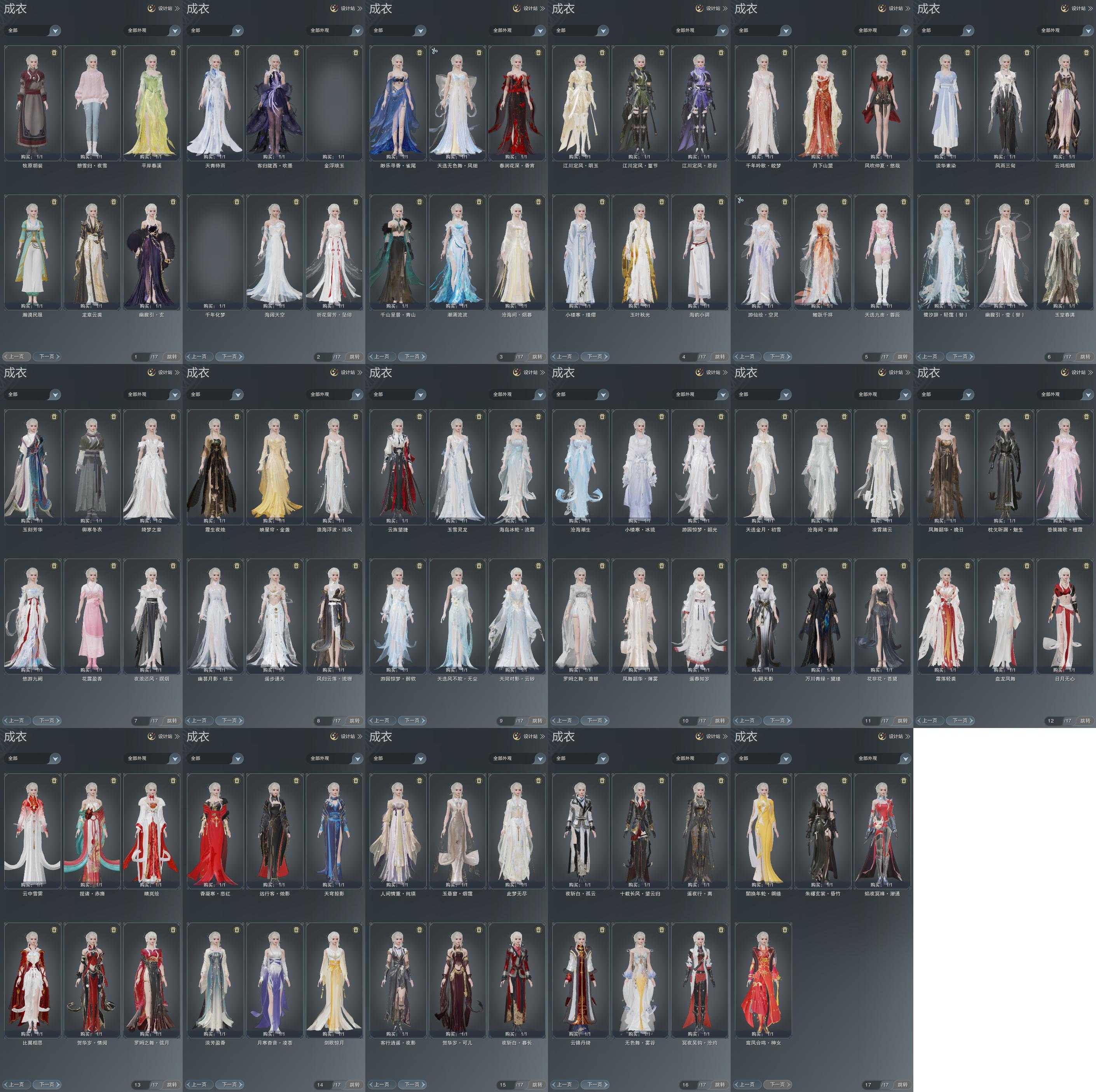 单盒成衣:[红盒衣, 一代花朝白衣, 狗盒衣, 白凤舞衣, 蓝游园衣, 白游园衣, 蓝海岛衣, 黑幽馥衣, 白幽馥衣替, 海阔盒衣, 蓝鹭衣替]