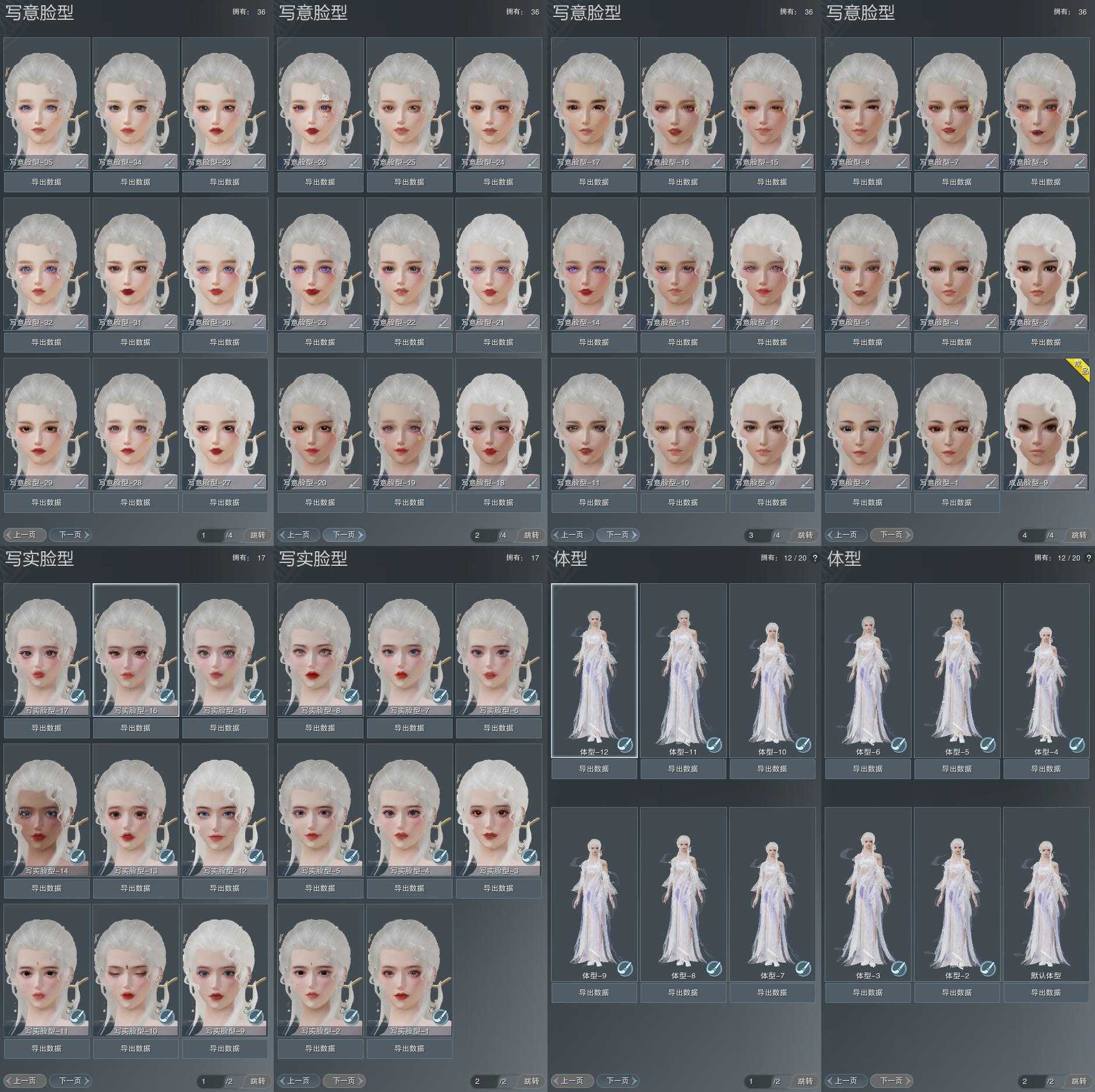 【捏脸】写意脸型36个,写实脸型17个,体型12个