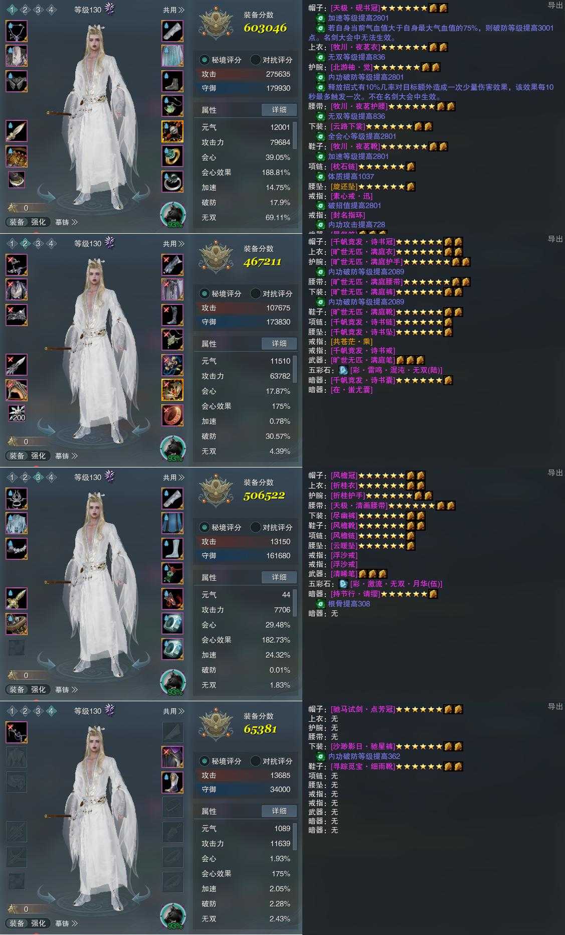 【装备】130级,花间游PVE603046,花间游PVP467211,离经易道PVE506522,装备四65381
