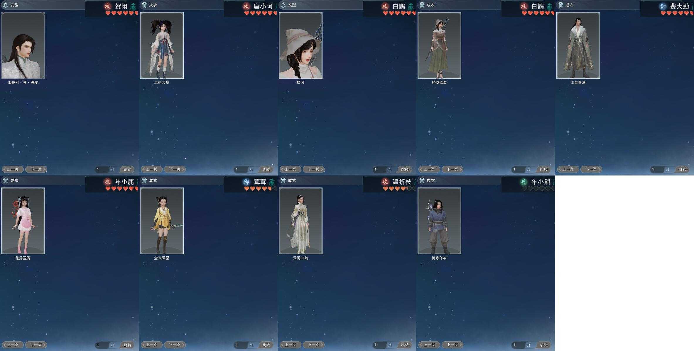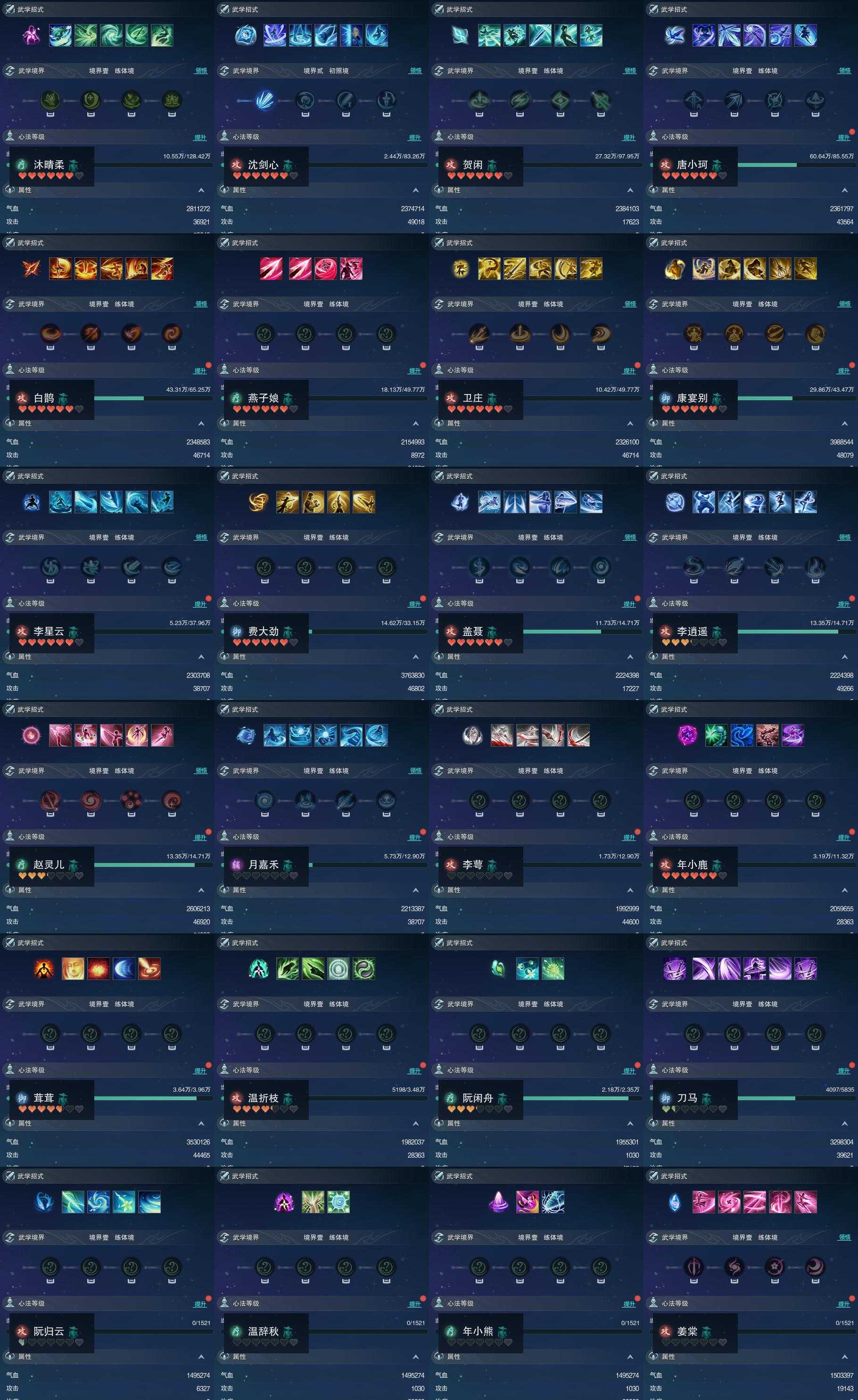 【同伴】沐晴柔86级境界壹,沈剑心84级境界贰,贺闲志84级境界壹,唐小珂83级境界壹,白鹊志81级境界壹,燕子娘79级境界壹,卫庄志79级境界壹,康宴别78级境界壹,李星云77级境界壹,费大劲76级境界壹,盖聂志70级境界壹,李逍遥70级境界壹,赵灵儿70级境界壹,月嘉禾69级境界壹,李萼志69级境界壹,年小鹿68级境界壹,茸茸志60级境界壹,温折枝59级境界壹,阮闲舟56级境界壹,刀马志44级境界壹,阮归云1级境界壹,温辞秋1级境界壹,年小熊1级境界壹,姜棠志1级境界壹