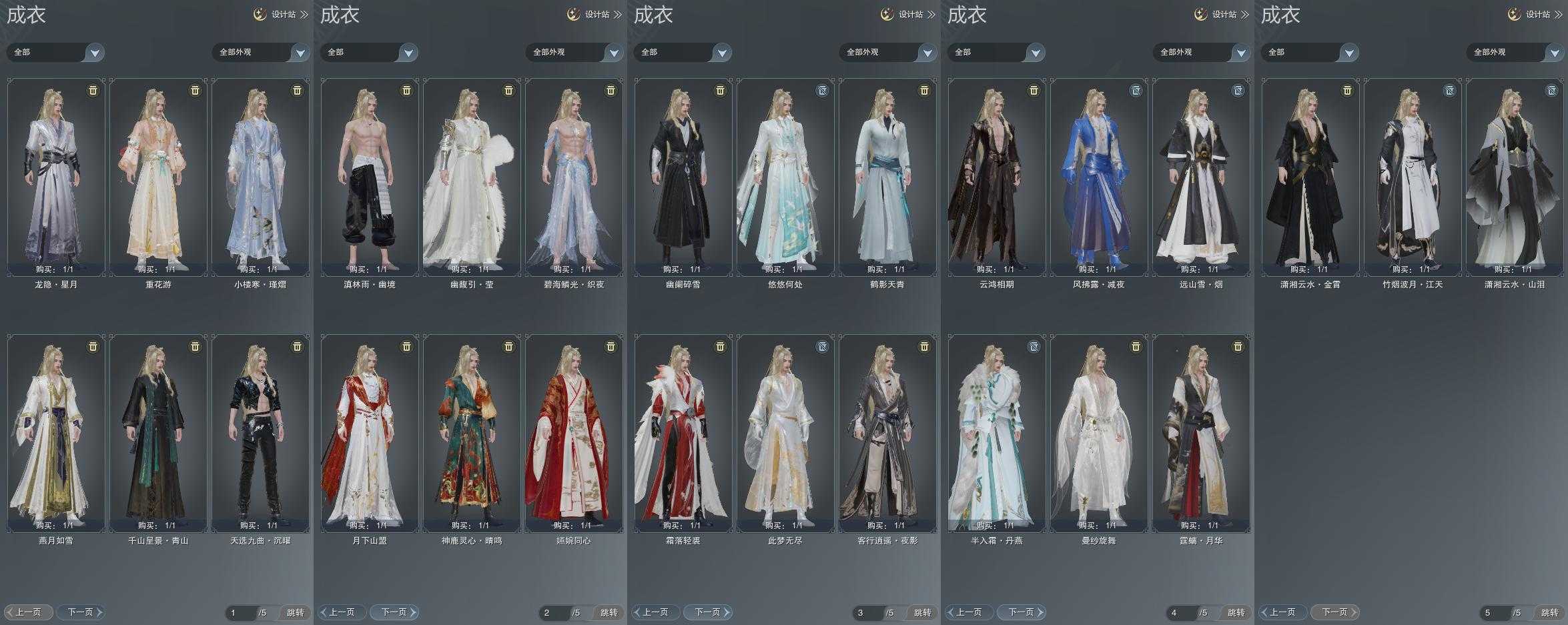 单盒成衣:[丝路盒衣, 四代七夕衣, 黑傣族衣, 紫龙隐衣, 原色鹿衣, 九七盒衣, 重花游衣]