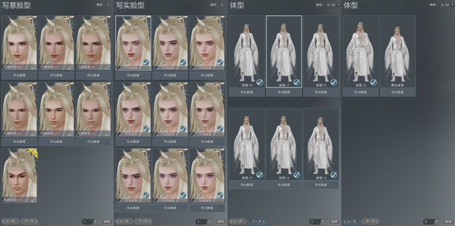【捏脸】写意脸型7个,写实脸型9个,体型8个