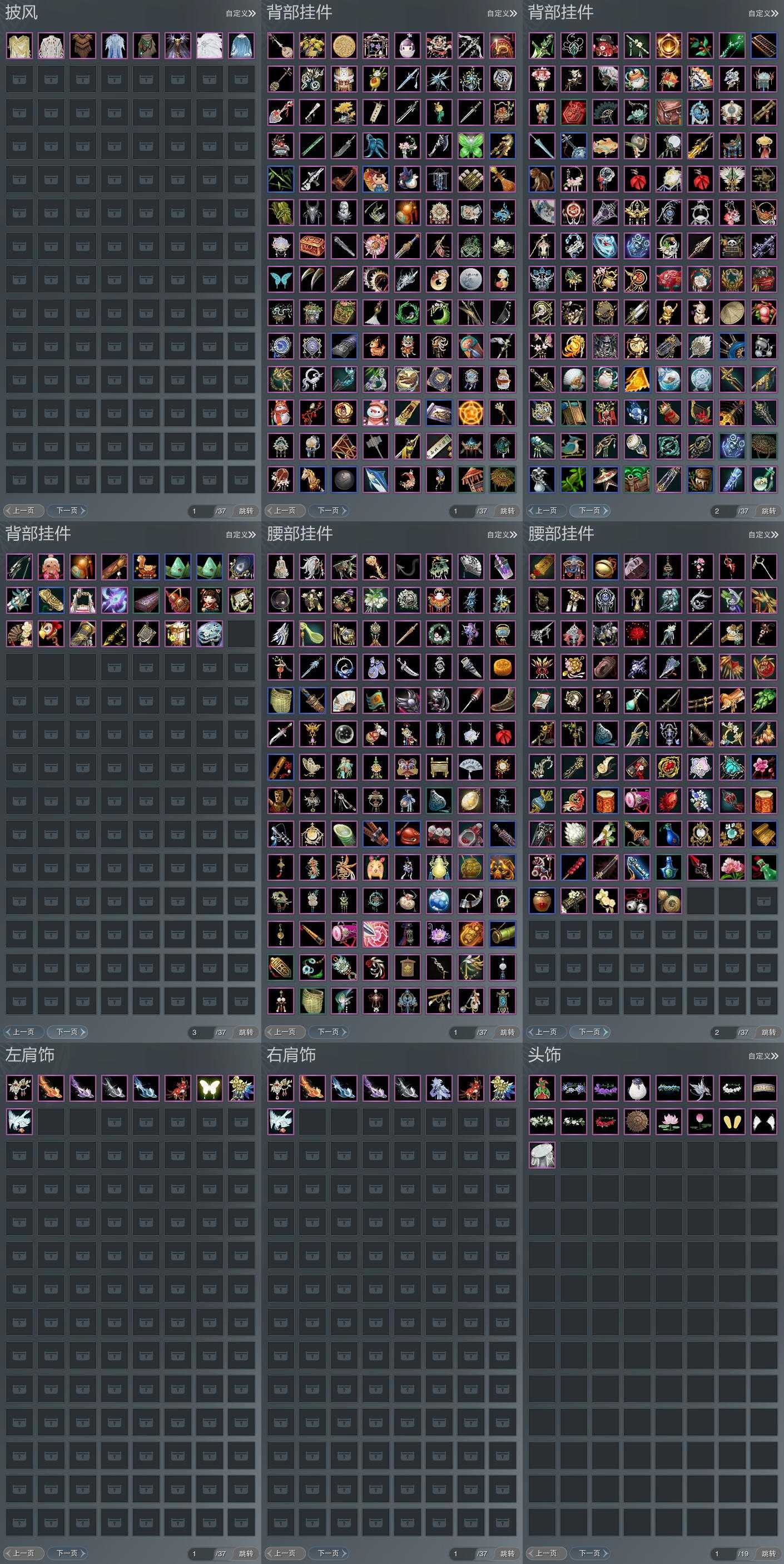 【肩饰】9左,9右,[风明雪华·左, 双鱼曳波·慧福·左, 双鱼曳波·如意·左, 双鱼曳波·无量·左, 双鱼曳波·极乐·左, 霜落轻裘·左, 觅花踪·黄云·左, 鹤影天青·左][风明雪华·右, 霜落轻裘·右, 鹤影天青·右]