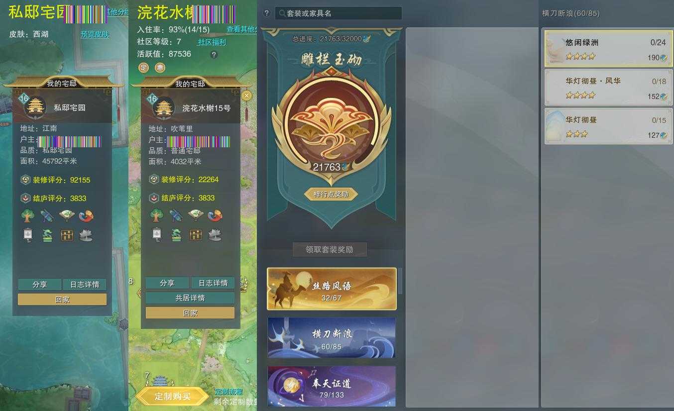 【家园】房屋等级16,社区等级了,私邸宅园,梓行点21763