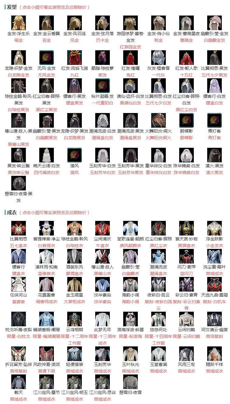 限时限量:[镜湖阑珊, 海韵小调, 云闲归鹤, 白枕戈, 粉浪海, 十三周年成衣, 十四周年工作服, 十二周年工作服, 富婆套]