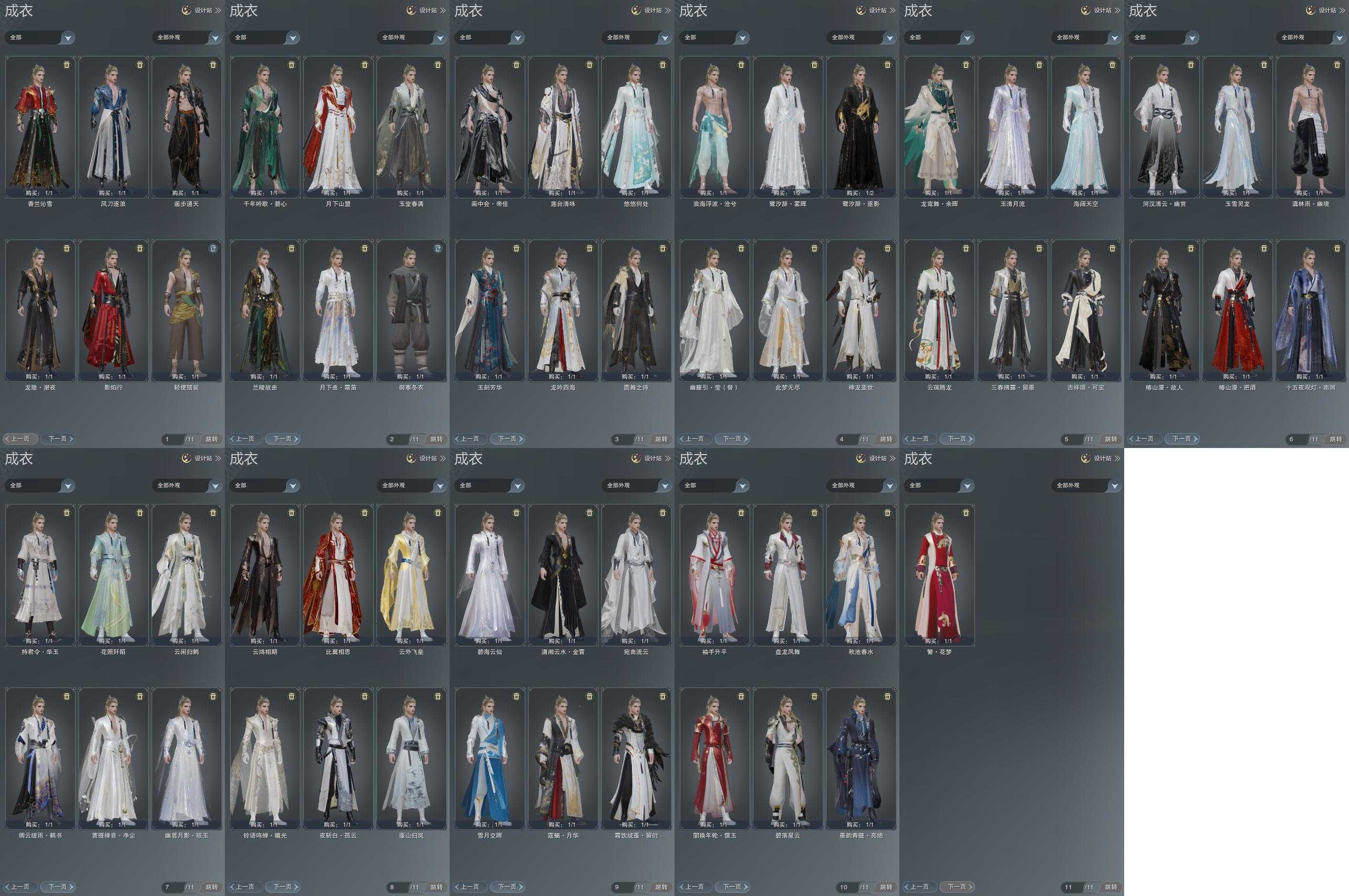 单盒成衣:[伞盒衣, 一代元宵衣, 一代七夕衣, 二代重阳衣, 白菩提衣, 黑藏袍, 刀宗衣, 白幽昙衣, 黑傣族衣, 红椿山衣, 灵龙盒衣, 圆舞盒衣, 白持君衣, 八七盒衣, 白幽馥衣替, 龙盒衣, 熊猫盒衣, 兰陵盒衣, 九七盒衣, 青蛇盒衣, 香兰盒衣]