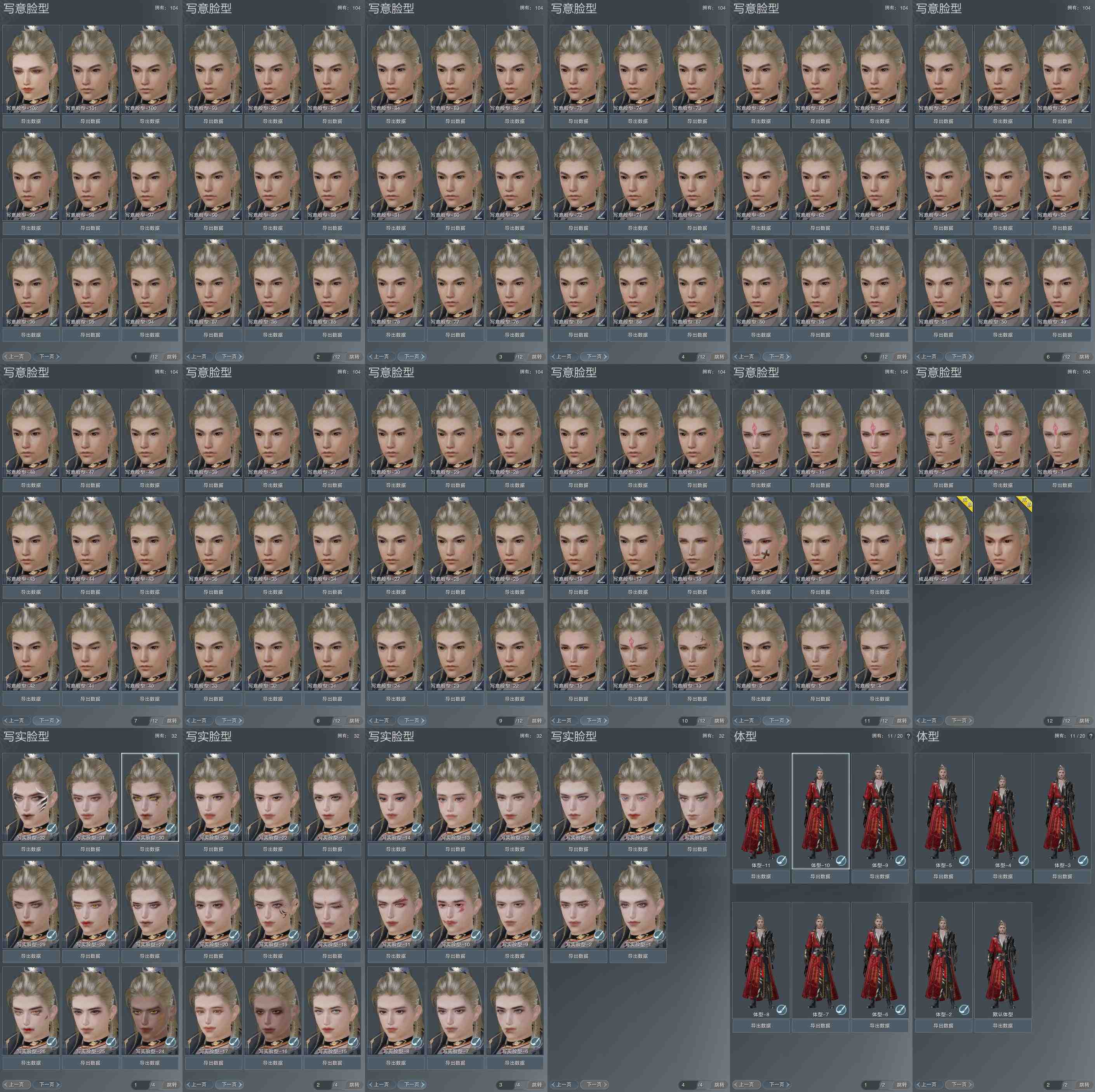 【捏脸】写意脸型104个,写实脸型32个,体型11个