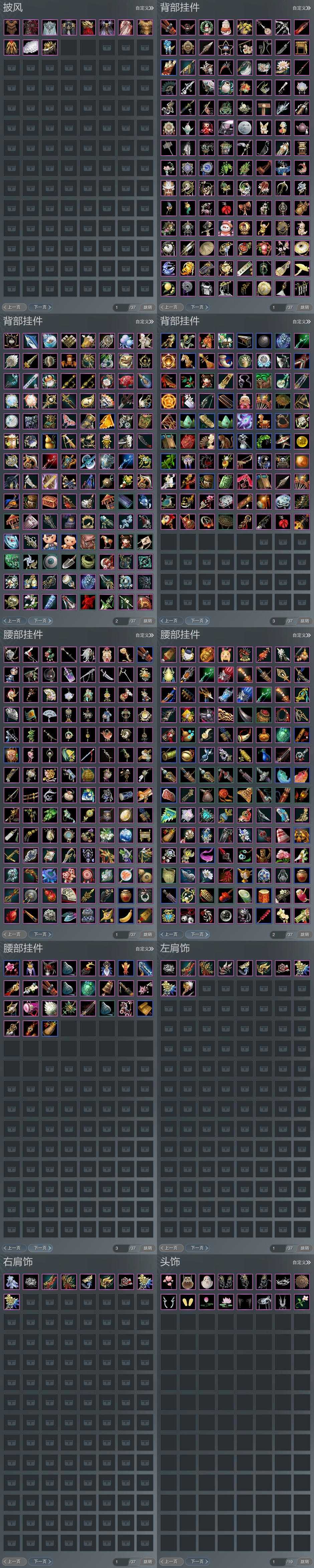 【背挂】304个[红黑白路, 冷魄琼枝, 白楼兰伞, 雨怜菇, 五七盒挂件, 赐清平, 圆舞盒挂件, 龙吟盒子背挂, 莲台盒背挂, 梦盒挂件, 九七背挂, 镰刀挂件, 墨龙挂件]