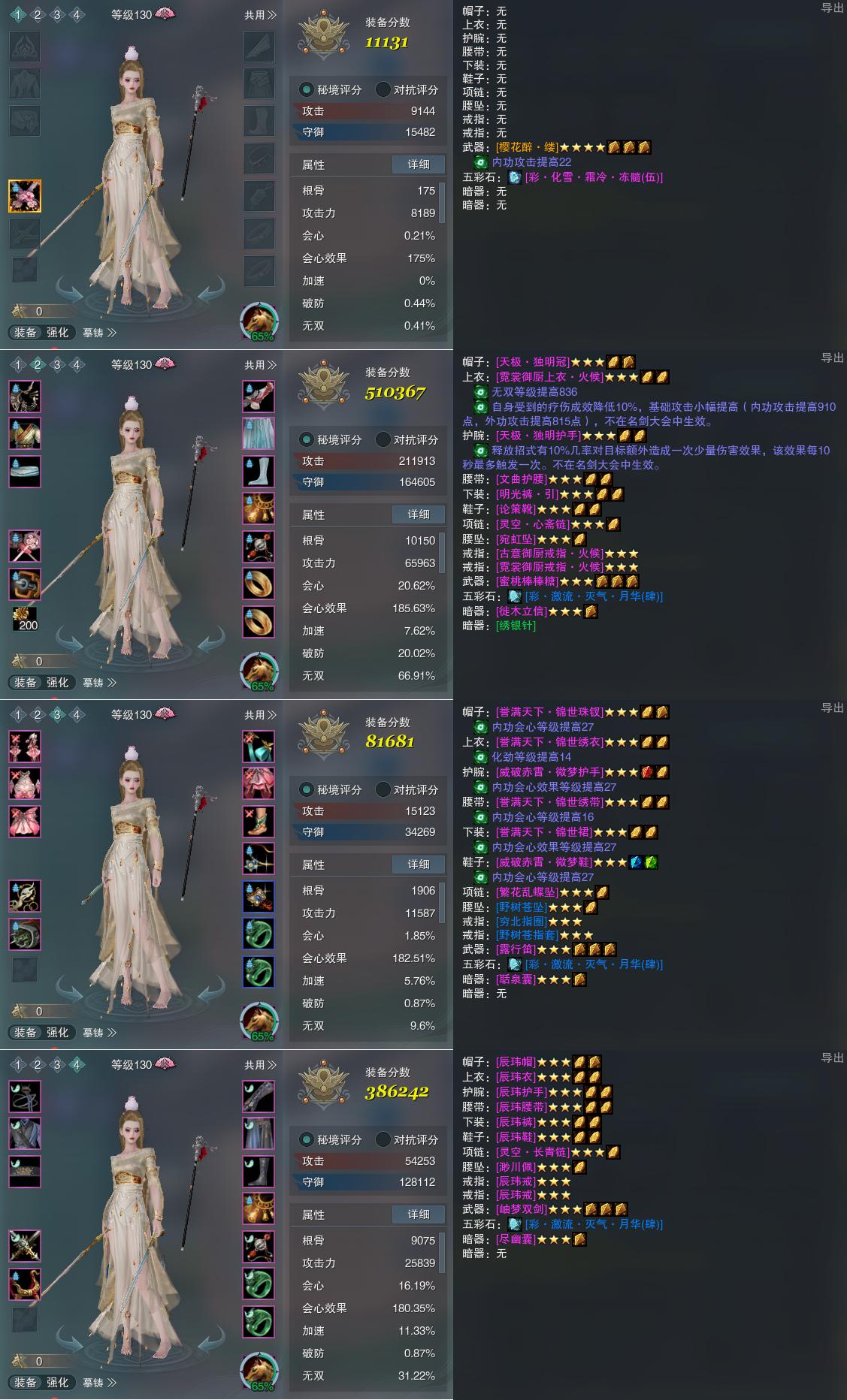 【装备】130级,装备一11131,冰心诀PVE510367,装备三81681,云裳心经PVP386242