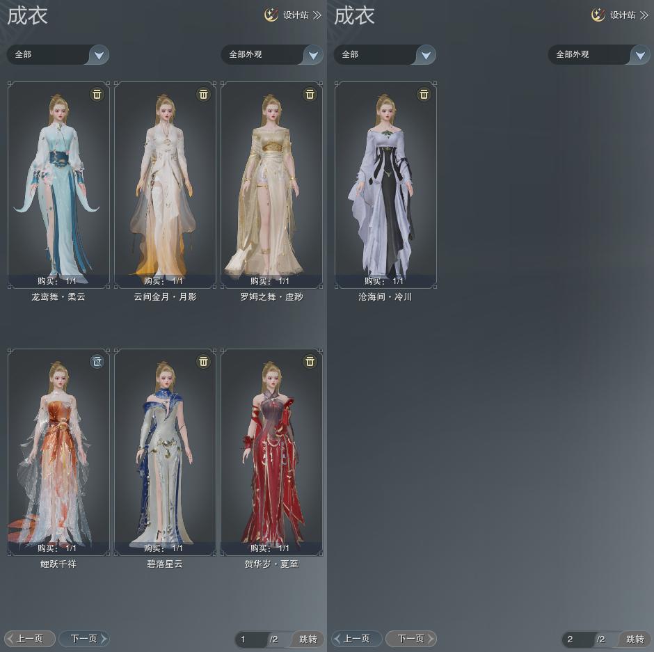 【成衣】总计12件,单盒成衣0件,限时限量3件,商城6件,下架3件