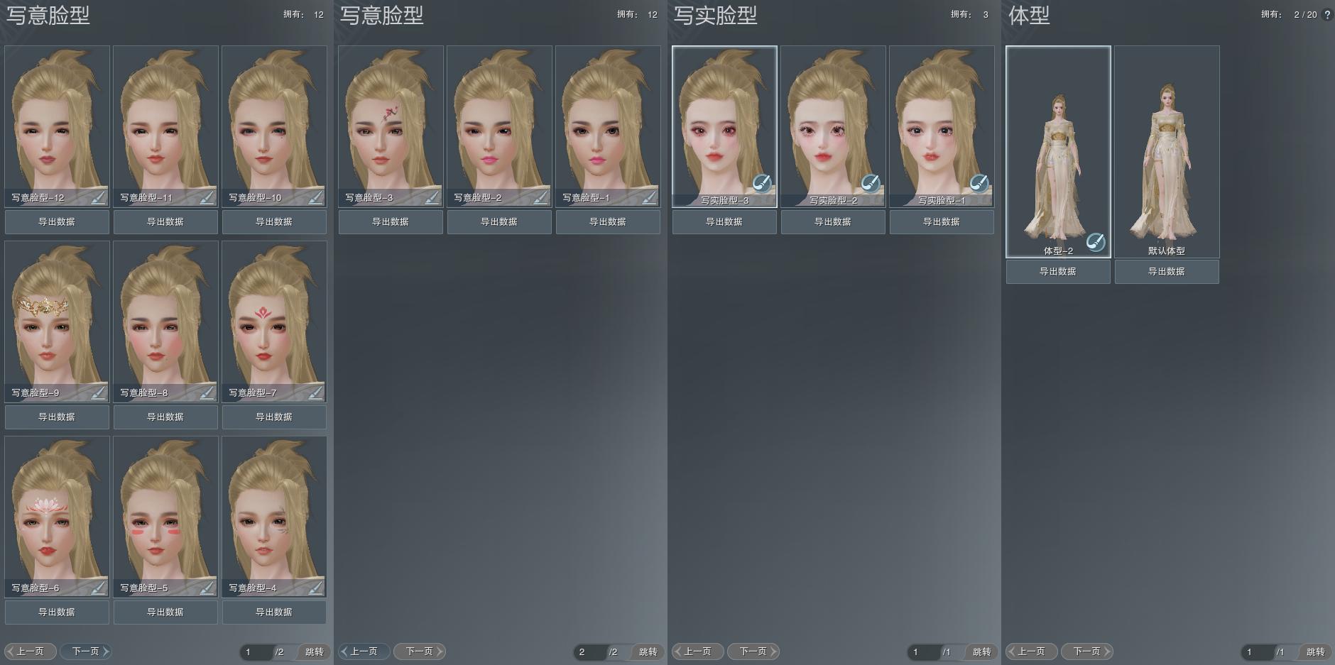 【捏脸】写意脸型12个,写实脸型3个,体型2个