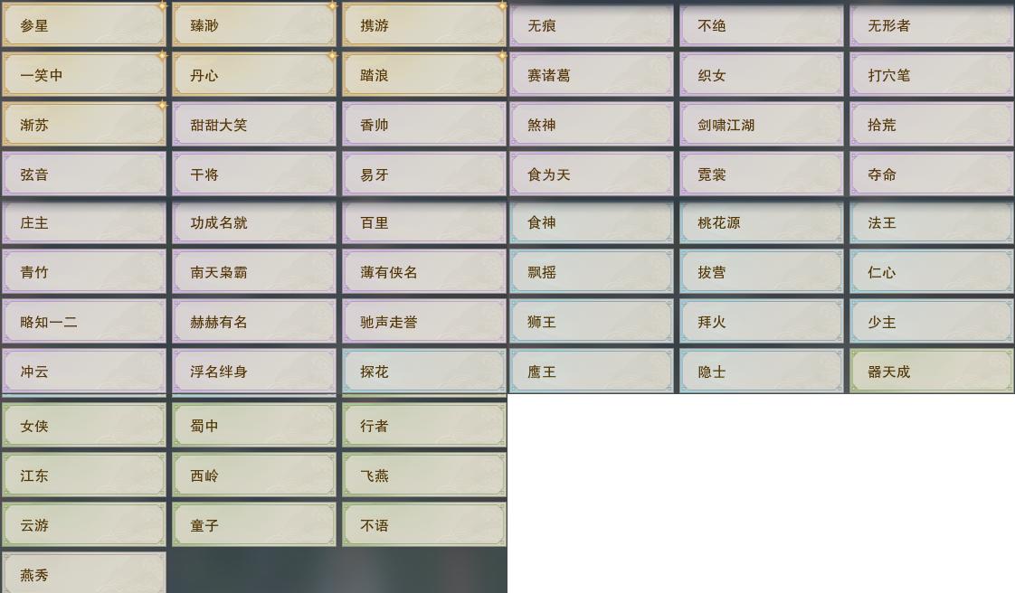 【奇趣】17个[西山拂雪, 霞醴碎香, 清砚碎雪, 金翅苍宇雕, 乌龟, 咫尺天涯, 鸾, 渡船, 羊车, 丹鸾]