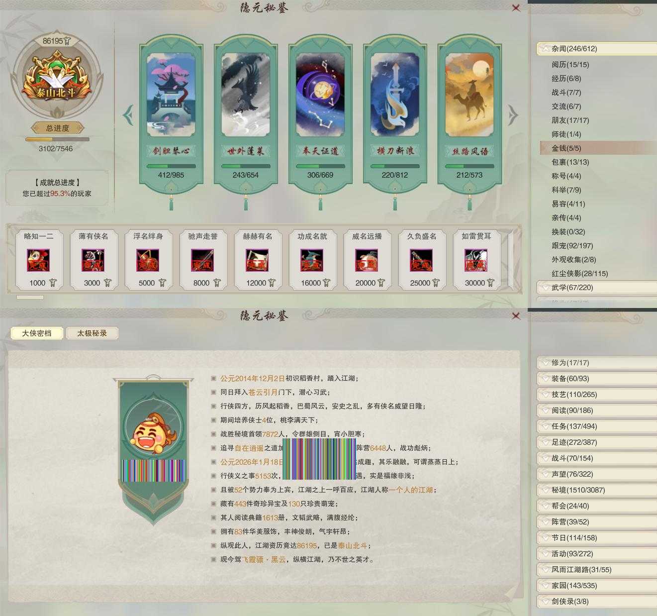 【同伴】沈剑心85级境界壹,燕子娘82级境界壹,沐晴柔81级境界壹,李逍遥74级境界壹,李萼意71级境界壹,康宴别67级境界壹,温折枝67级境界壹,年小鹿67级境界壹,李星云62级境界壹,茸茸志60级境界壹,年小熊57级境界壹