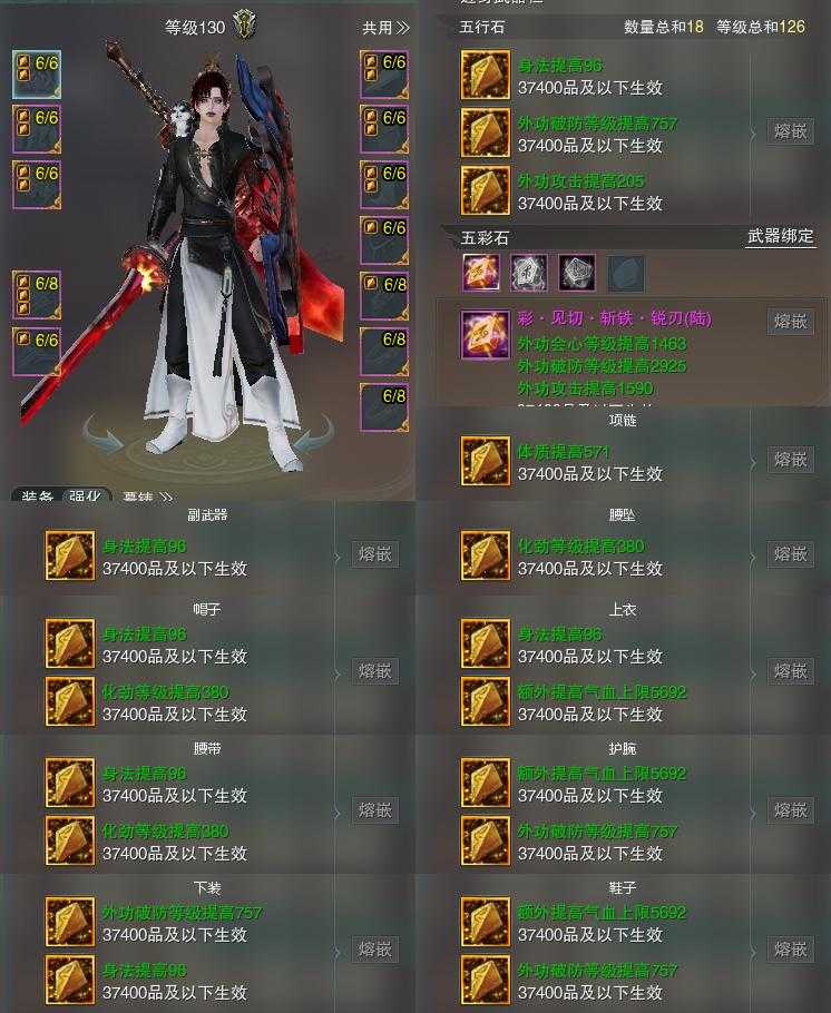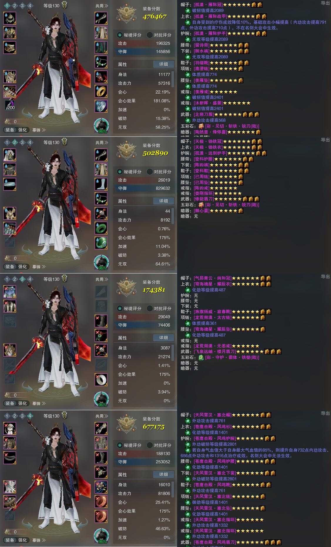 【装备】130级,分山劲PVE476467,铁骨衣PVE502890,装备三174381,分山劲PVP677175