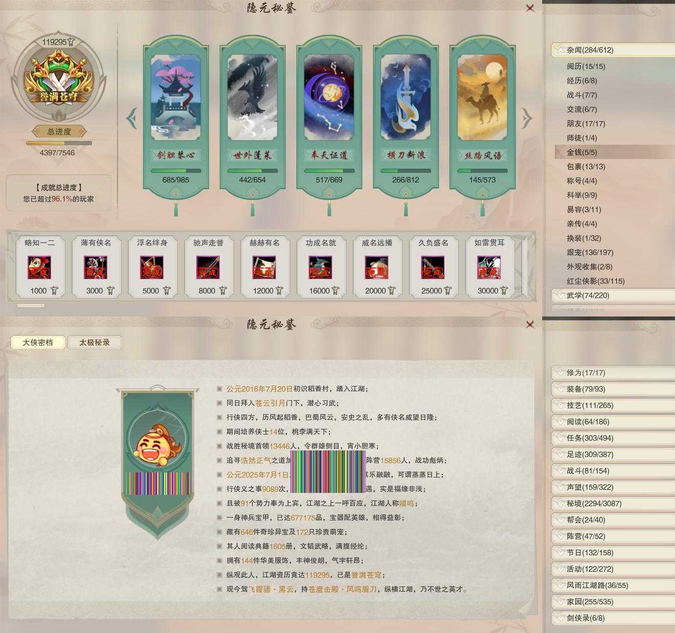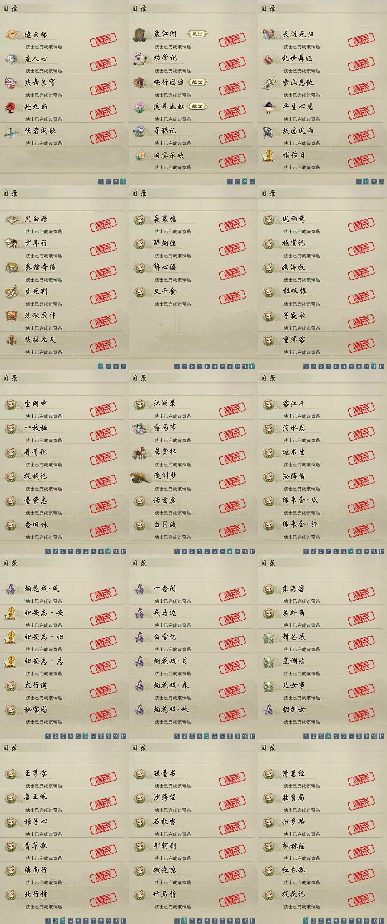 【奇遇】23个[天涯无归, 劝学记, 雪山恩仇, 兔江湖, 平生心愿, 黑白路, 乱世舞姬, 惜往日, 少年行, 故园风雨, 扶摇九天, 流年如虹, 侠行囧途, 寻猫记, 茶馆奇缘, 庆舞良宵, 生死判, 凌云梯, 炼狱厨神, 度人心, 赴九幽, 旧宴承欢, 侠者成歌]