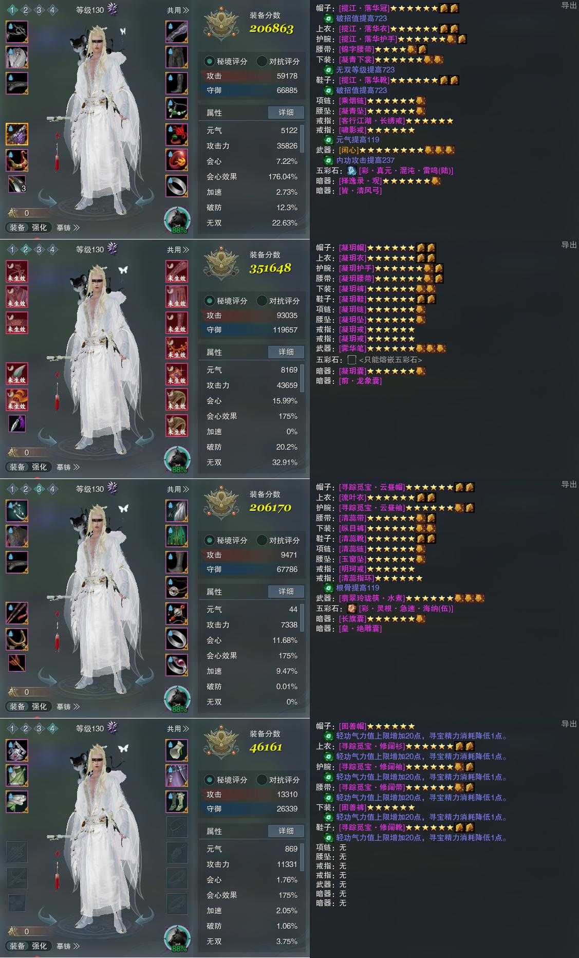 【装备】130级,装备一206863,装备二351648,装备三206170,装备四46161