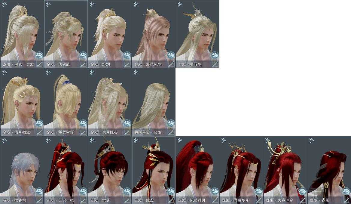 【发型】金发9个[狐金, 资历金, 中秋金, 苏金, 倒闭金, 玫瑰金, 猪金, 凤金, 黑龙隐金发], 红发8个[五红, 六红, 十红, 十二红, 猴红, 猪红, 小资历红, 一代灰], 黑发25个, 白发16个, 盒子发型[黑谪仙黑发, 二代重阳白, 幽阑白发, 小金龙黑发, 小熊黑发, 小金龙白发, 十二黑, 芙蓉黑发, 白海岛黑发, 小熊白发, 芙蓉白发, 七中白盒黑发, 七中白盒白发, 幽涧愀兮白发, 镖盒黑发, 镖盒白发, 黑椿山黑发, 踏青黑发, 红黑妖眸盒黑发, 蓝钻石盒白发, 踏青白发, 黑龙隐黑发], 总页数11