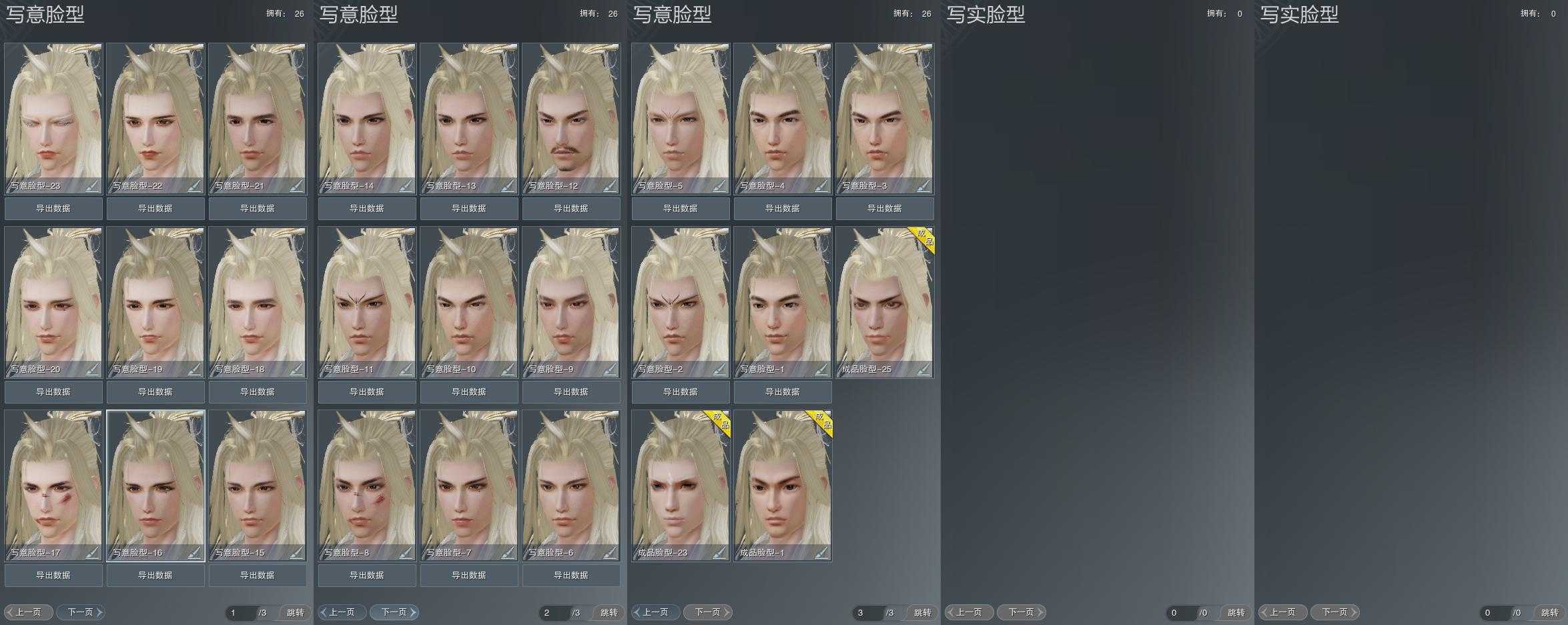 【捏脸】写意脸型26个,写实脸型0个,体型1个