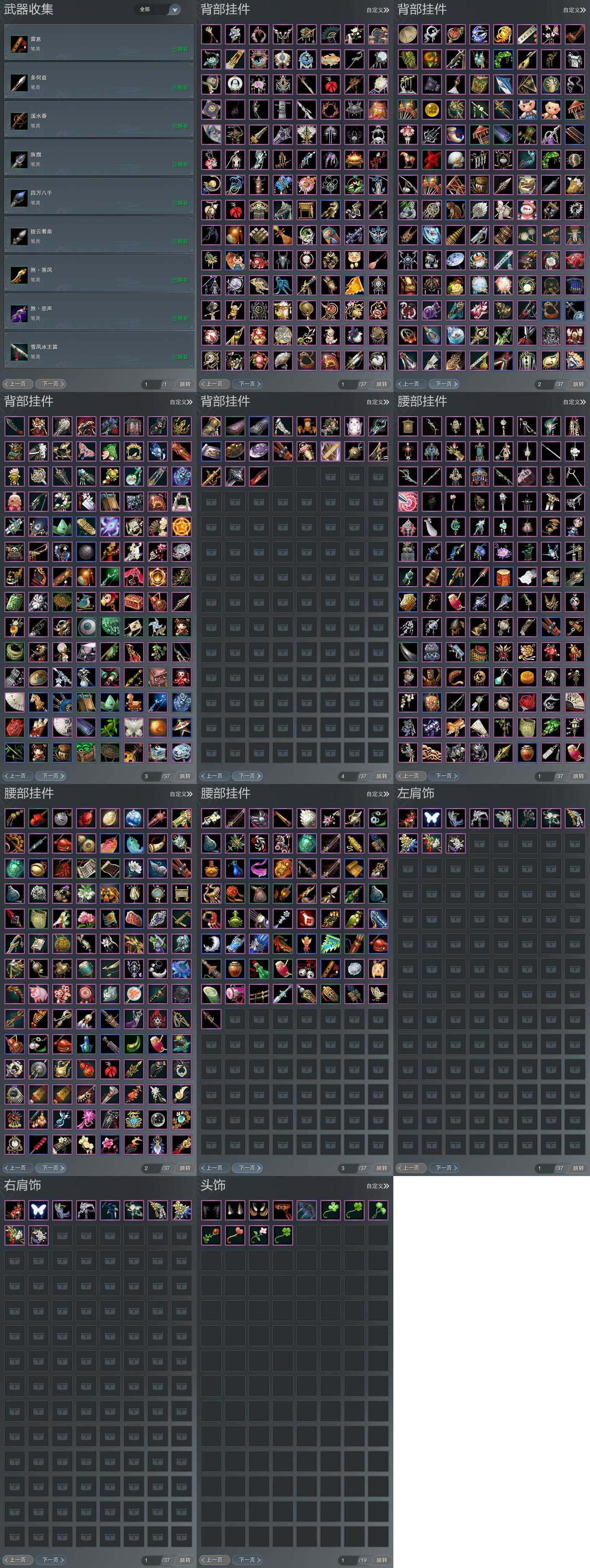 盒子:[雪月盒(缺白发), 猪盒(缺披风), 花盒(缺披风), 二代万花盒(缺披风), 白腿盒(缺白发), 蓬莱盒(缺披风), 灯盒(缺披风), 二代重阳盒, 小金龙盒, 七中白盒, 小熊盒, 芙蓉盒, 镖盒, 兔盒(缺披风), 踏青盒, 红黑妖龙盒(标), 黑椿山盒(标), 黑龙隐(豪)]