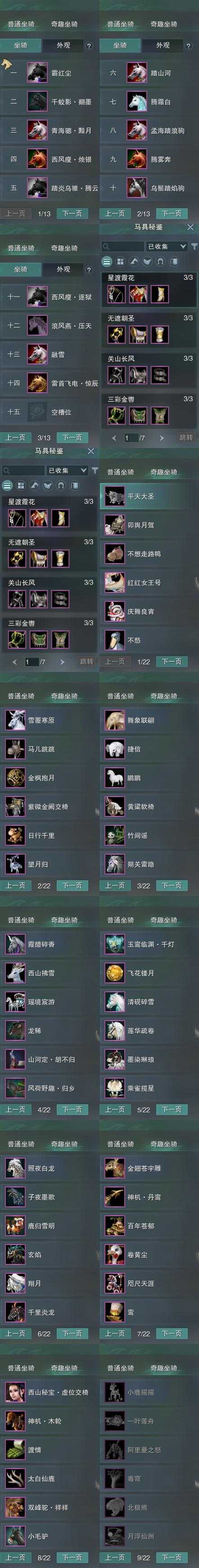 【坐骑】14个[踏炎腾云, 西风瘦烛银, 西风瘦逐狱, 青海骢黯月, 翻墨, 霸红尘, 雷首飞电惊辰, 乌鬃踏焰驹]