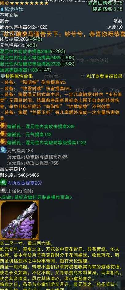 【拓印】9页外观收集,9武器拓印,拓印90奇遇CW煞·落凤,拓印100奇遇CW煞·悲声,拓印门派特效雪凤冰王笛