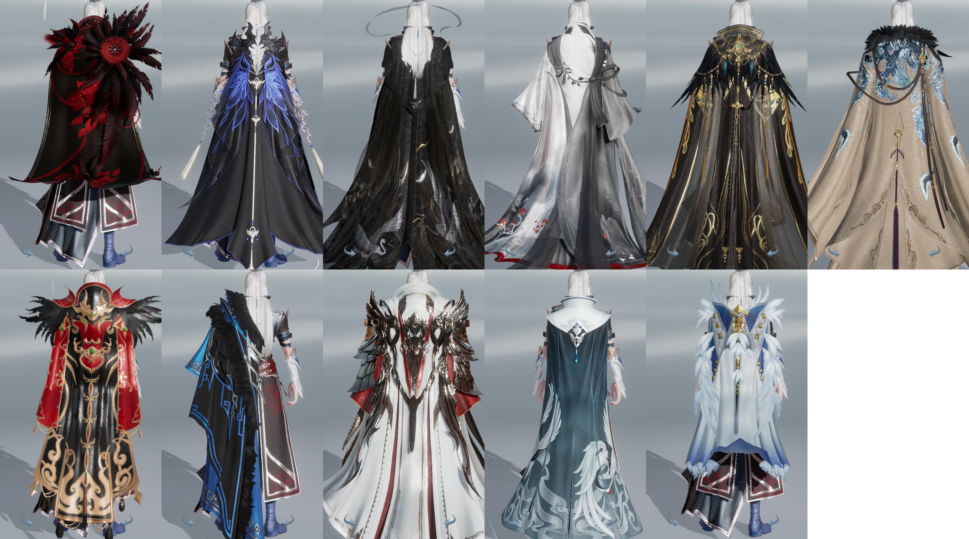 【披风】17个,[夜泊蝶影, 7W资历披风, 一代浩气, 青盒子披风, 三山披风, 白盒子披风, 一代白, 秃盒子披风, 丐盒子披风, 迷金盒披风, 咩盒披风]