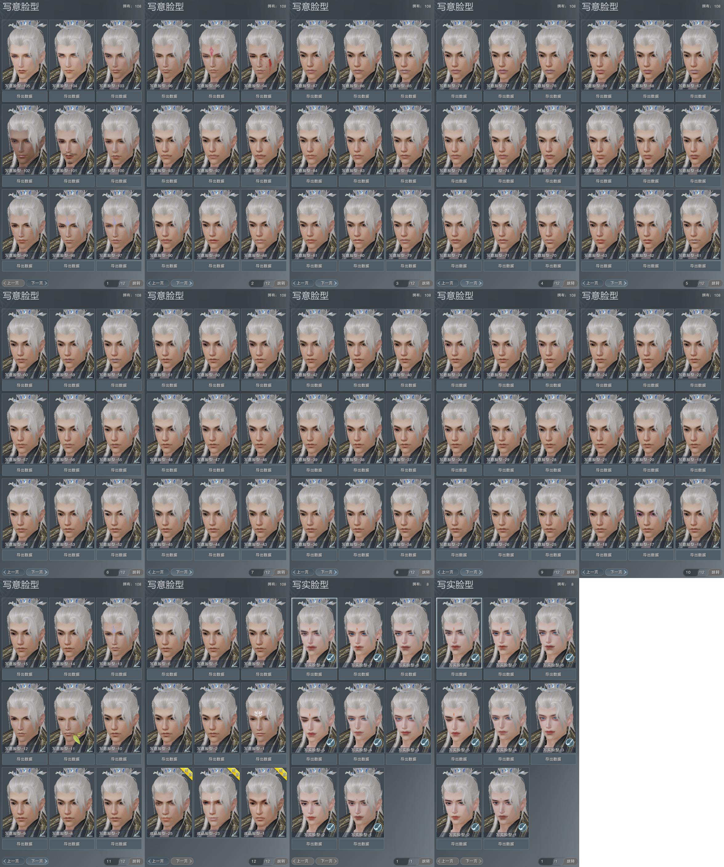 【捏脸】写意脸型108个,写实脸型8个,体型1个