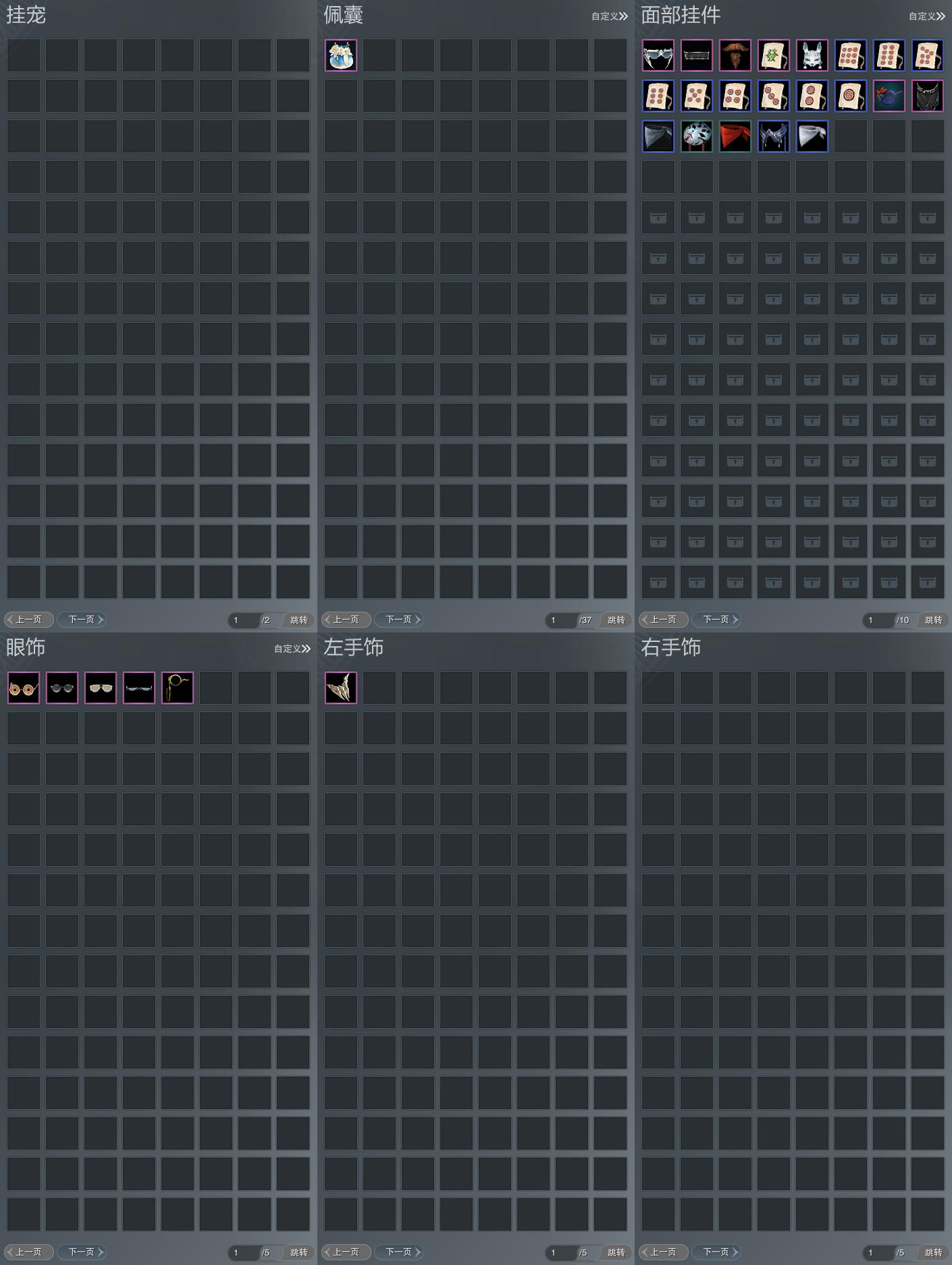 盒子:[雪月盒(缺白发), 秃盒, 二代花朝盒, 白菩提盒(豪), 青盒, 白盒, 丐盒, 迷金盒, 咩盒]