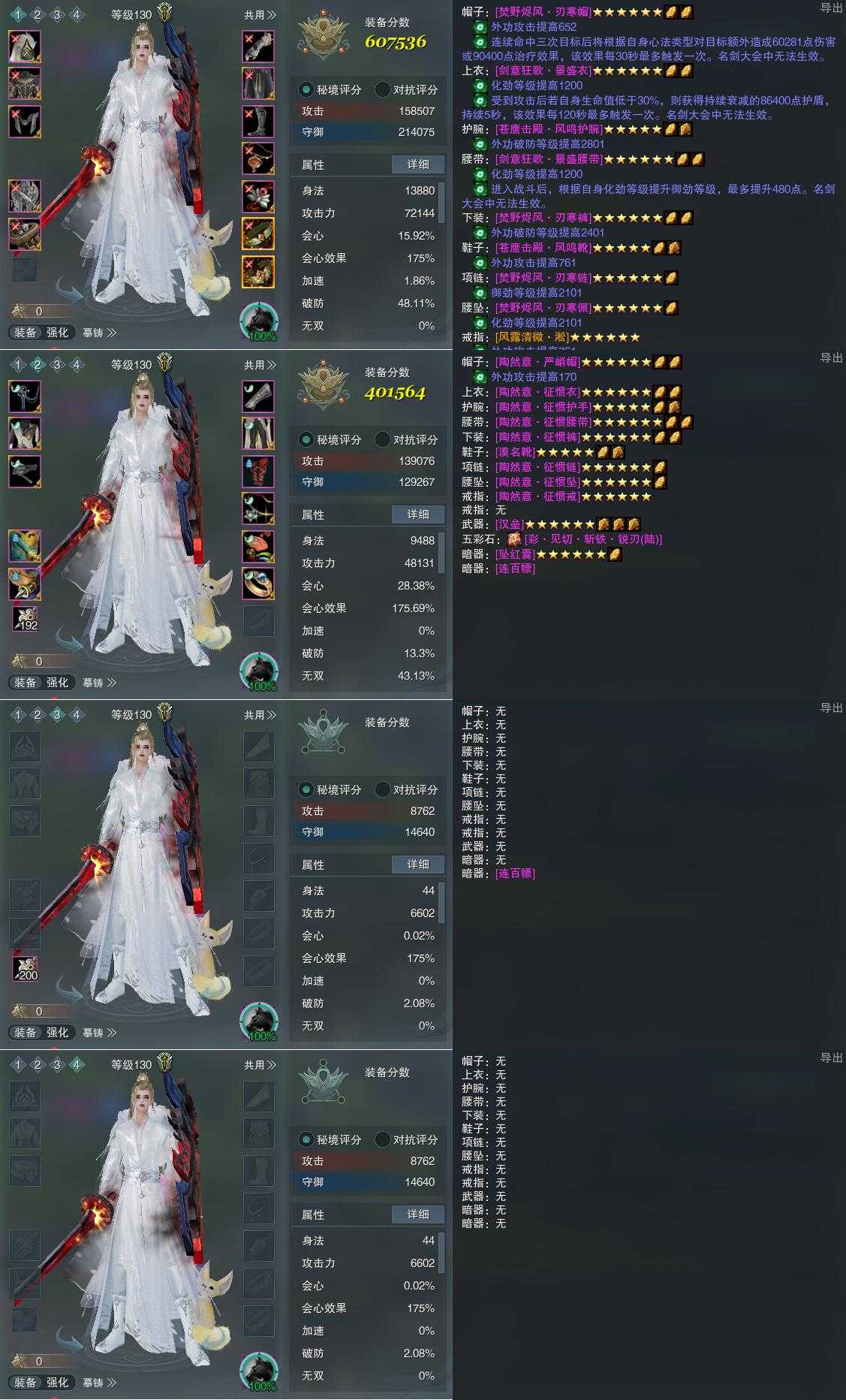 【装备】130级,分山劲PVP607536,分山劲PVP401564,装备三0,装备四0