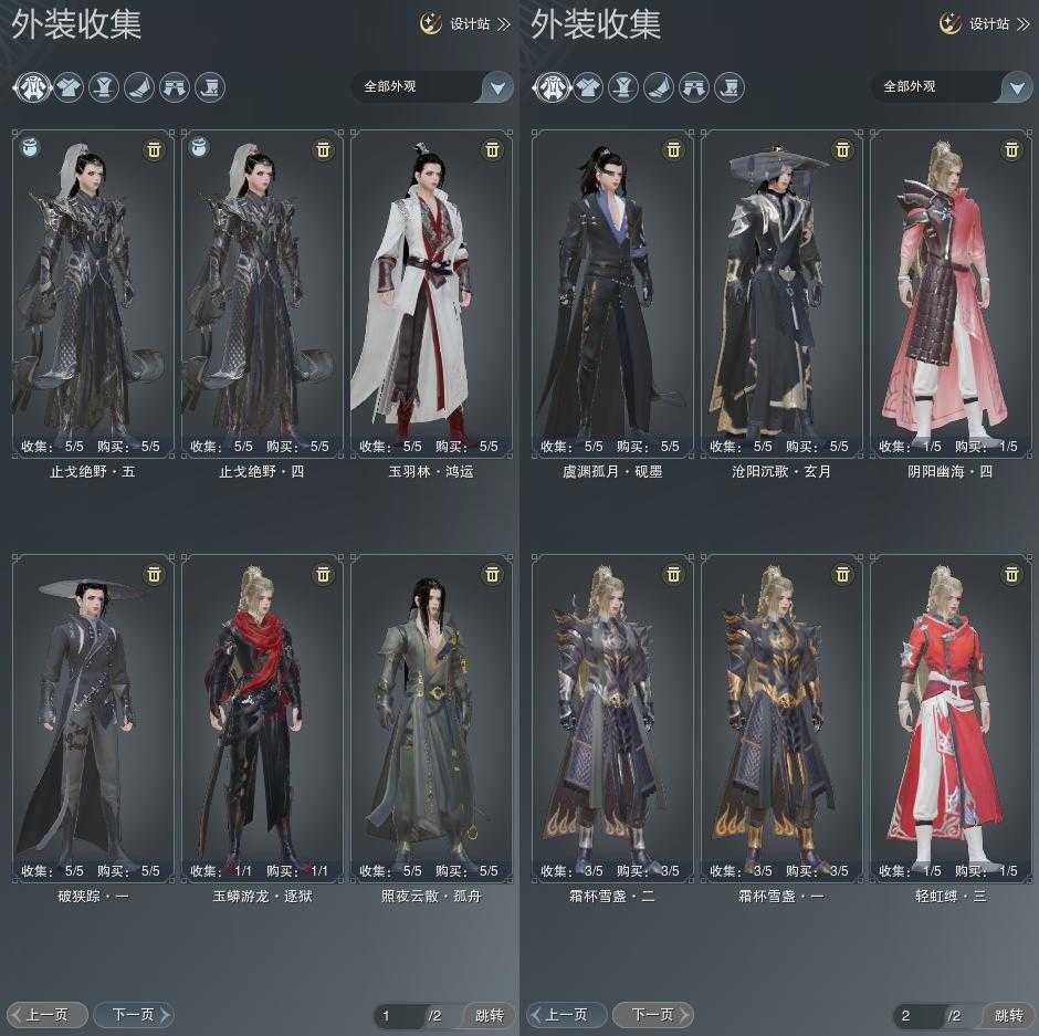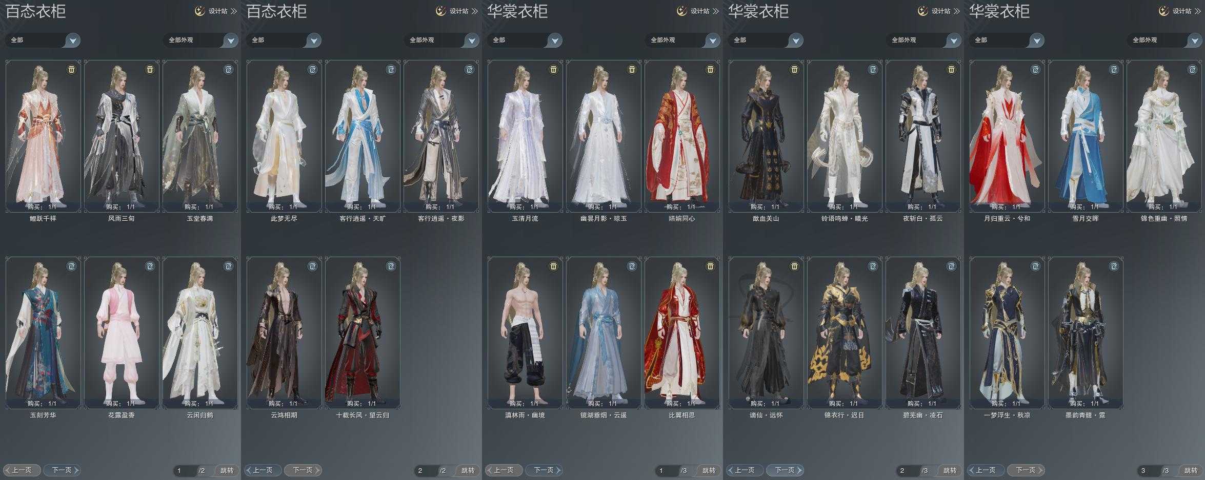 单盒成衣:[雪月盒衣, 猫盒衣, 黑谪仙衣, 五七盒衣, 白菩提衣, 白幽昙衣, 黑傣族衣]