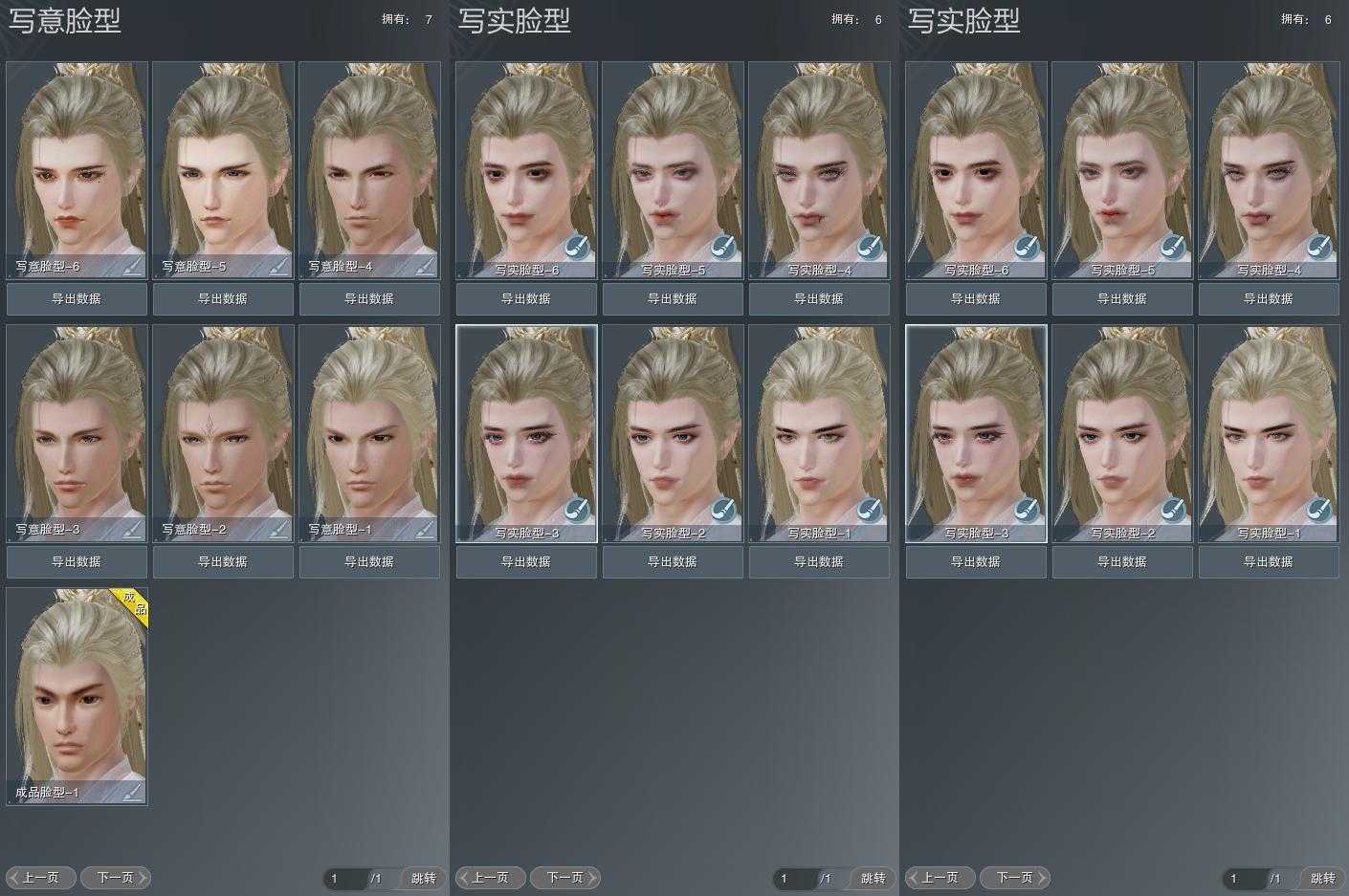 【捏脸】写意脸型7个,写实脸型6个,体型1个