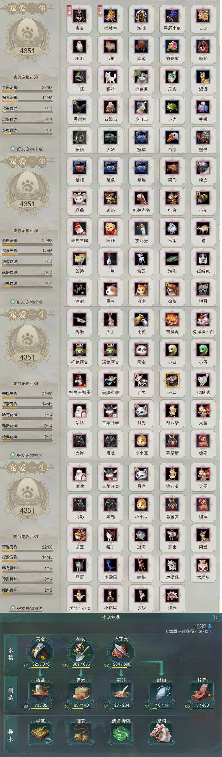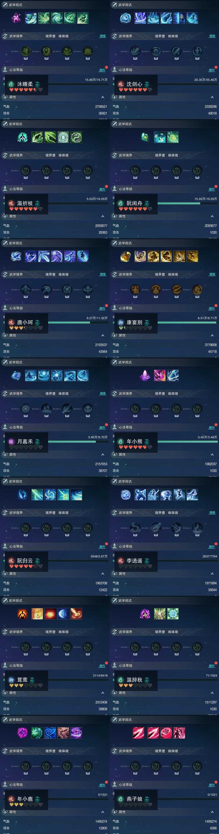 【同伴】沐晴柔82级境界壹,沈剑心81级境界壹,温折枝72级境界壹,阮闲舟72级境界壹,唐小珂68级境界壹,康宴别66级境界壹,月嘉禾64级境界壹,年小熊59级境界壹,阮归云57级境界壹,李逍遥47级境界壹,茸茸志45级境界壹,温辞秋3级境界壹,年小鹿1级境界壹,燕子娘1级境界壹
