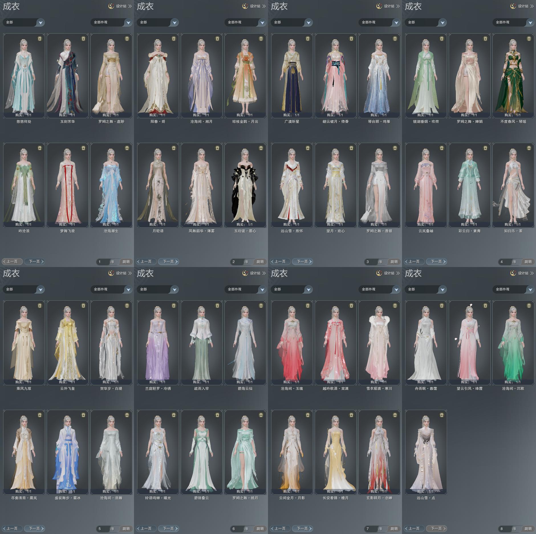 限时限量:[兰庭冷绣, 雪衣寒川, 望云绛霞, 蓝舞步, 黄长安, 镜湖吹荷, 琴台顾鸣筝, 十四周年工作服]