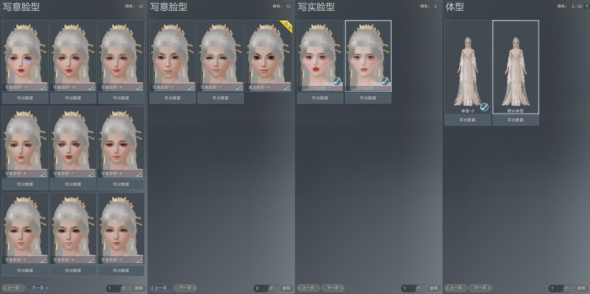 【捏脸】写意脸型12个,写实脸型2个,体型2个