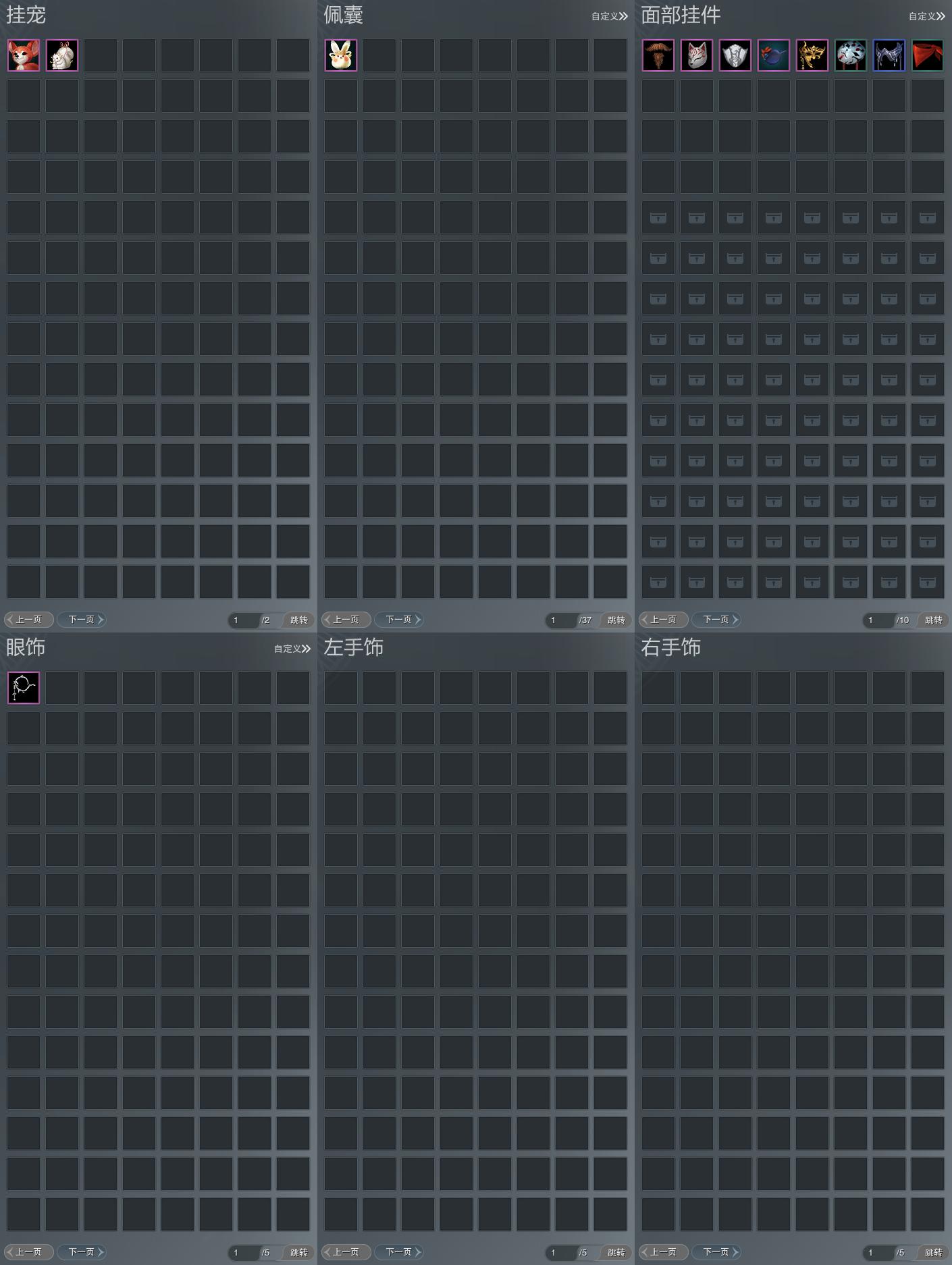 盒子:[歌盒, 粉翩云盒(标), 蘑菇盒, 白凤舞盒(豪)(缺黑发), 二代粉盒, 蓬莱盒, 灯盒, 白如归盒(缺黑发), 金琼枝盒(豪), 一代花朝白盒, 黑玲珑盒(缺背挂), 沧海盒, 白楼兰盒, 竹笛盒, 小熊盒]