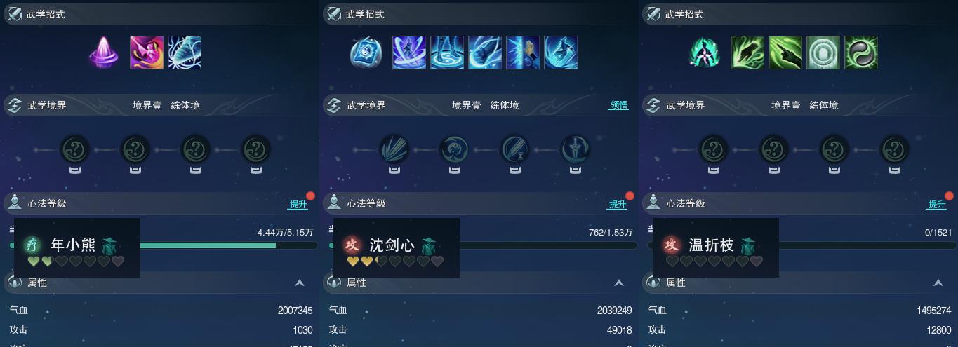 【同伴】年小熊62级境界壹,沈剑心54级境界壹,温折枝1级境界壹