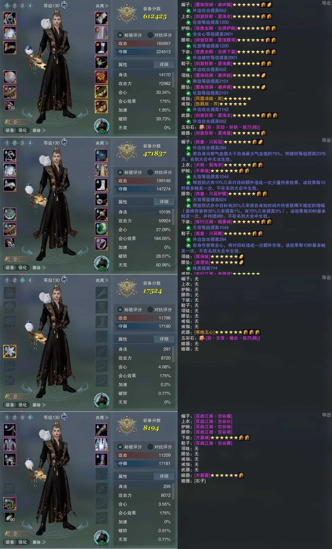【装备】130级,凌海诀PVP612425,凌海诀PVE471837,装备三17524,装备四8194