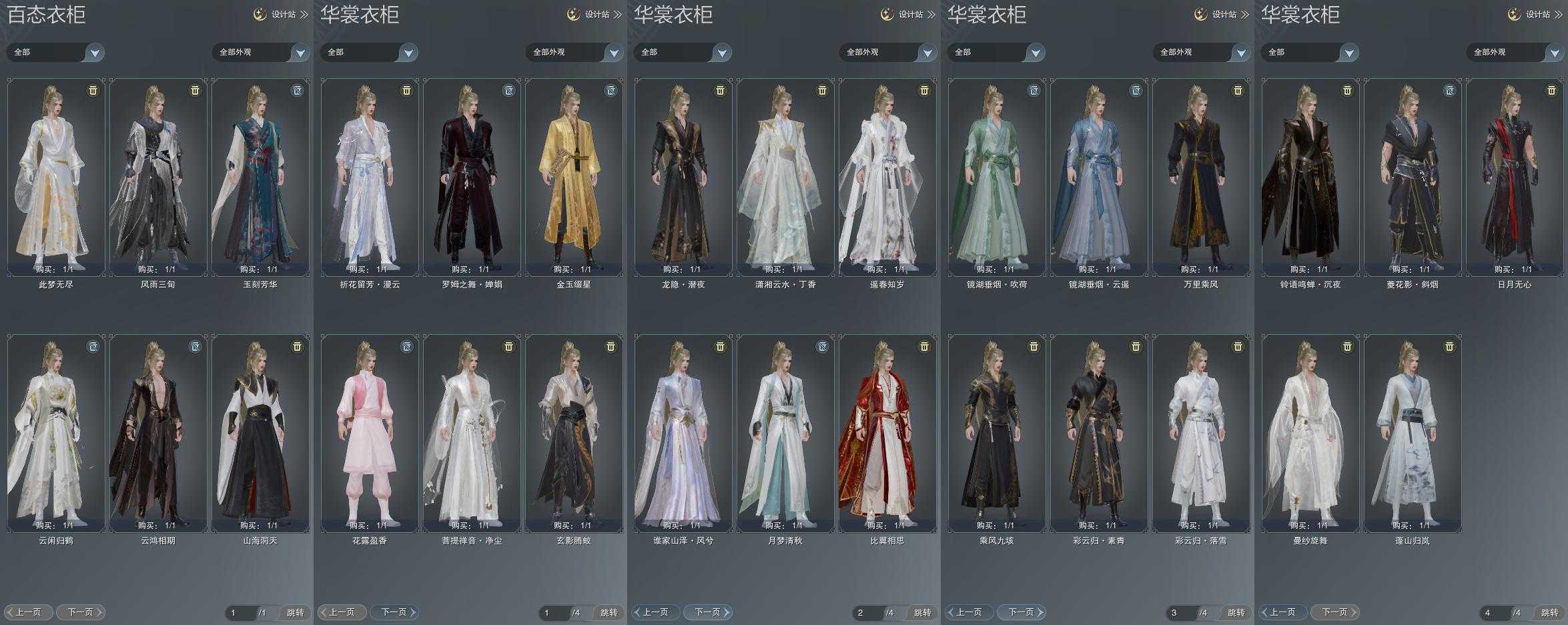 单盒成衣:[小白龙衣, 三代中秋衣, 一代乘风衣, 白菩提衣, 红梅盒衣]