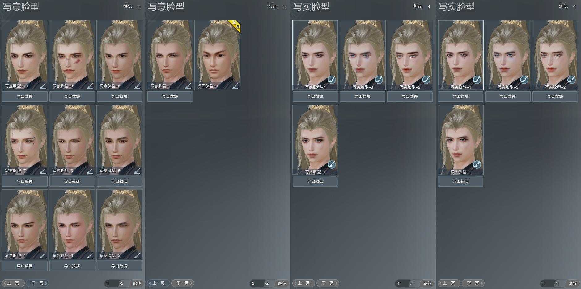 【捏脸】写意脸型11个,写实脸型4个,体型1个