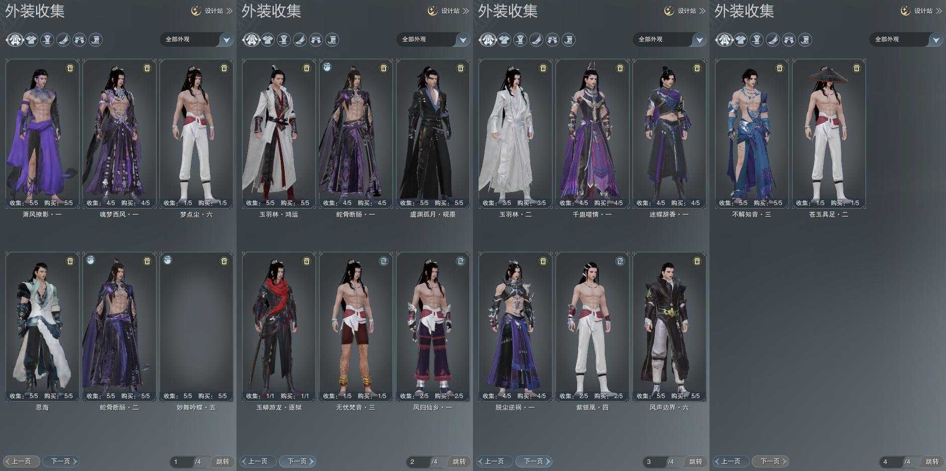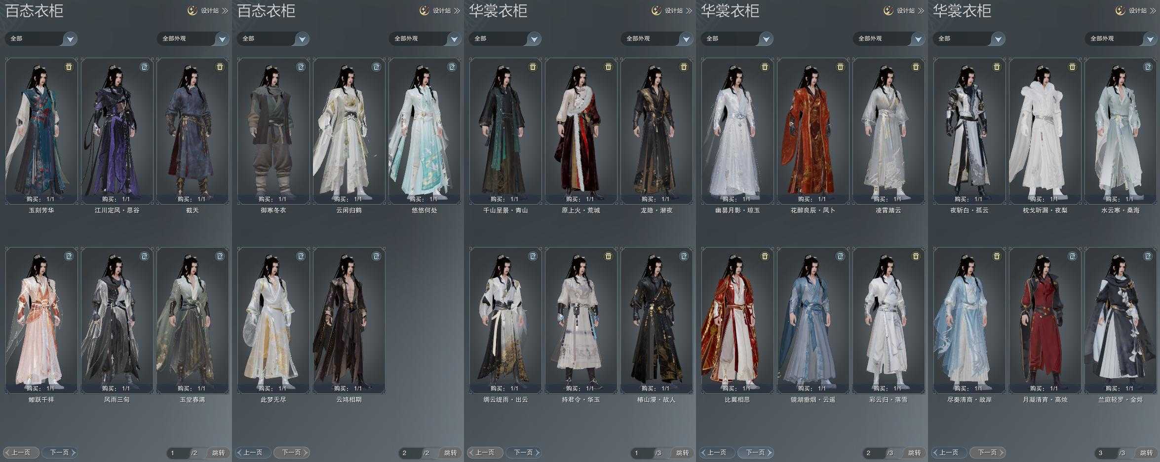 单盒成衣:[踏云盒衣, 红六七盒衣, 白持君衣, 黑上火, 绿千山衣]