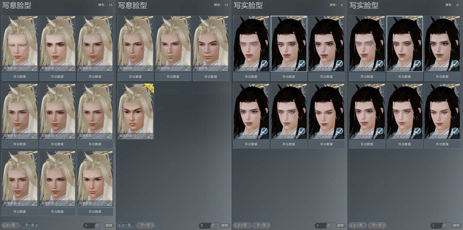 【捏脸】写意脸型13个,写实脸型6个,体型1个