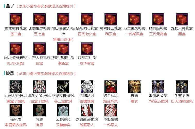 【披风】13个,[雪啸刚风, 熔金烈风, 蓑衣, 7W资历披风, 衍天预热披风, 黑盒子披风, 一代恶人, 战服恶人, 白盒子披风, 苍二盒披风, 云麒赫奕]