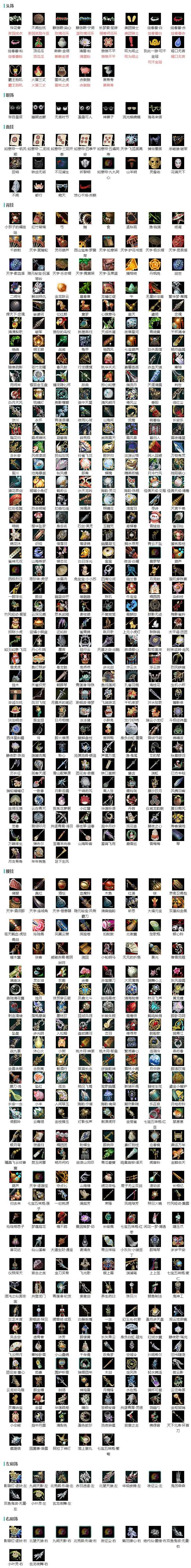 【肩饰】11左,10右,[九阙天影·左, 北望天狼·左, 赤羽逍遥·左, 华焰披锦·左, 双鱼曳波·无量·左, 小叶灵·左, 玄龙夜舞·左][九阙天影·右, 北望天狼·右, 绝代仙·墨楼·右, 小叶灵·右, 玄龙夜舞·右]