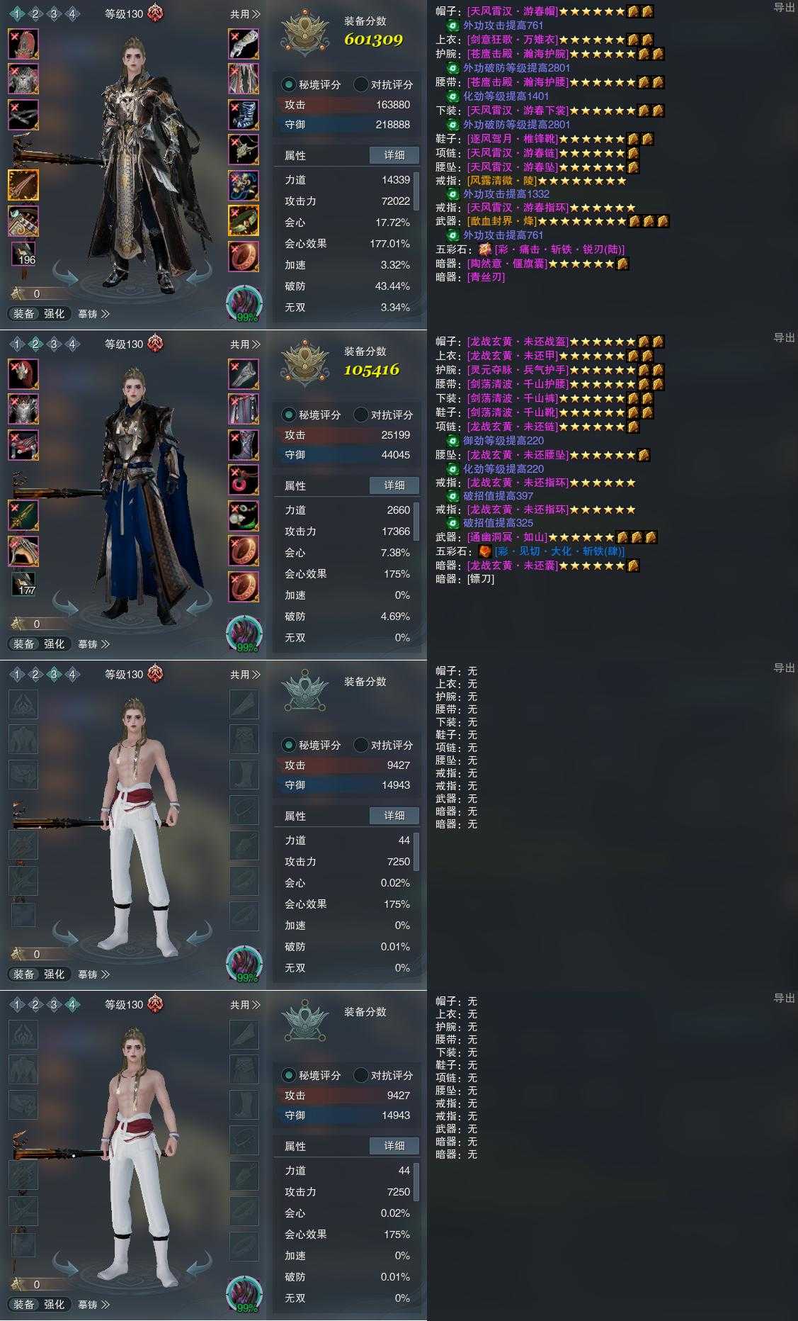 【装备】130级,傲血战意PVP601309,装备二105416,装备三0,装备四0