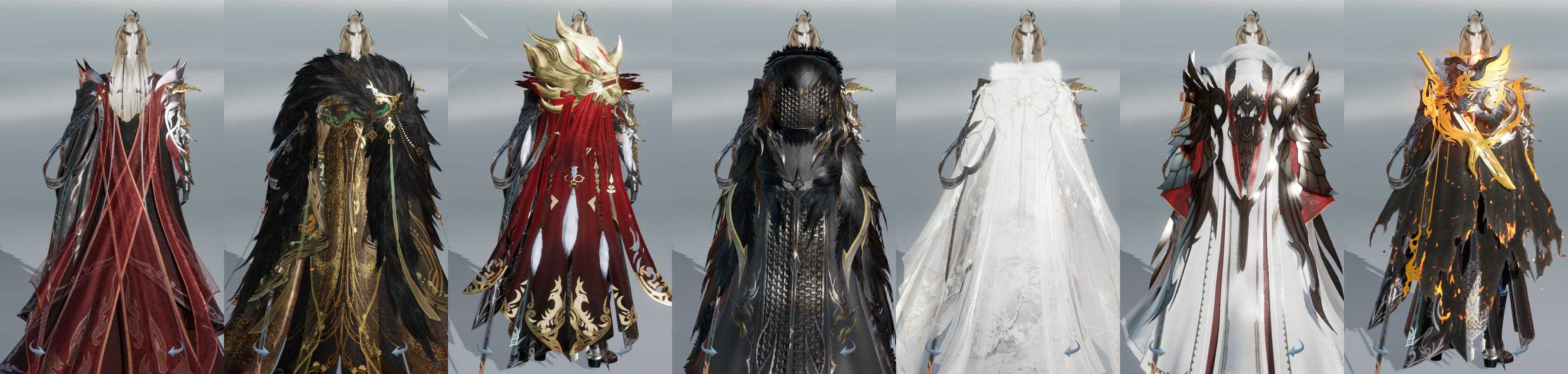 【披风】7个,[刀宗预热披风, 熔金烈风, 黑盒子披风, 白盒子披风, 猪盒子披风, 业火劫, 双十二黑披风]