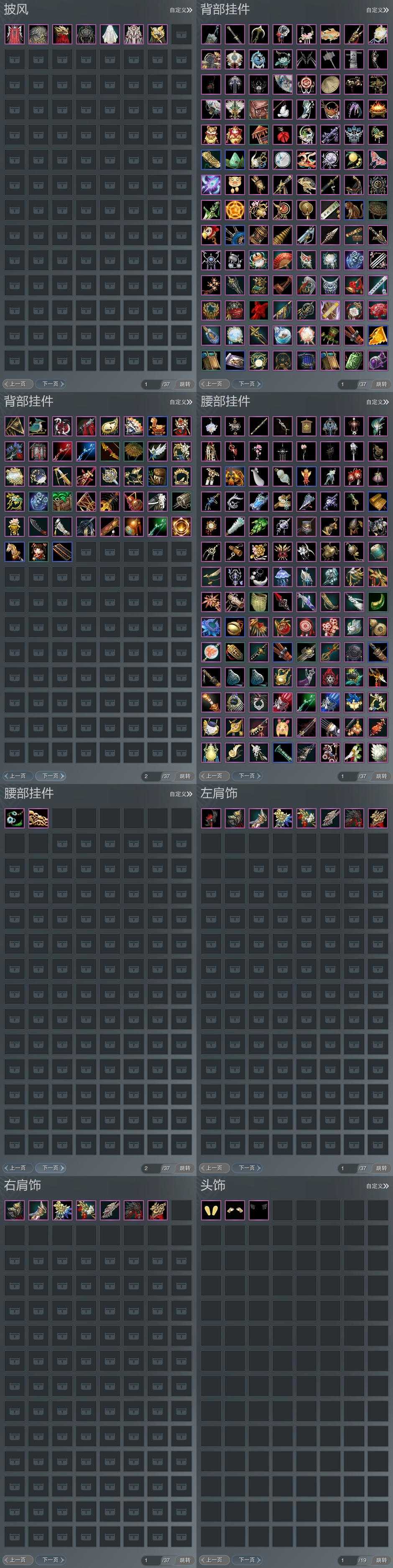 【肩饰】8左,7右,[九阙天影·左, 云中雪霁·左, 北望天狼·左][九阙天影·右, 云中雪霁·右, 北望天狼·右]