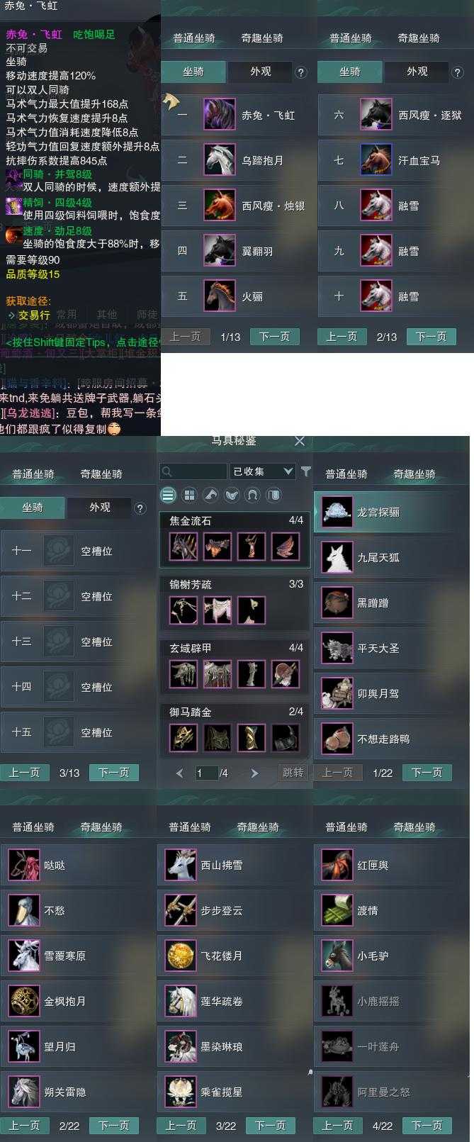 【坐骑】10个[西风瘦烛银, 西风瘦逐狱, 乌蹄抱月, 劲足赤兔飞虹]
